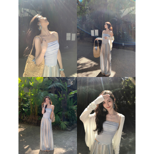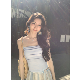 短款 带胸垫方领吊带背心女设计感褶皱修身 上衣 自留单品 MULVAN