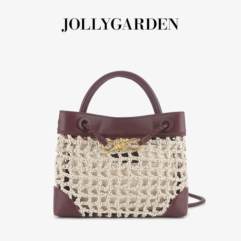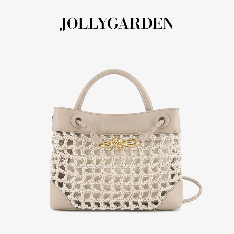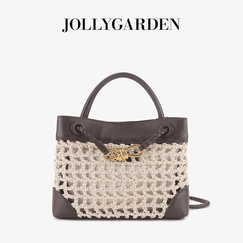 新款 麦藤 牛皮拼接编织托特包通勤手提单肩斜挎包 GARDEN JOLLY