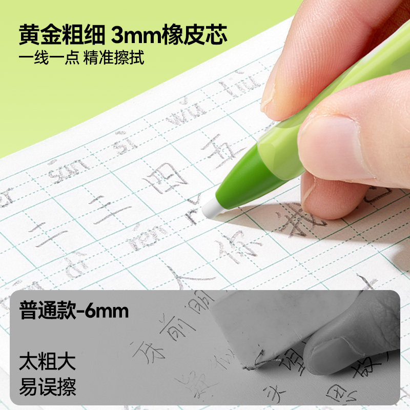 猫太子按动免削橡皮笔可擦橡皮笔橡皮铅笔橡皮儿童橡皮无屑防丢橡皮擦字成线橡皮素描美术生专用笔型橡皮