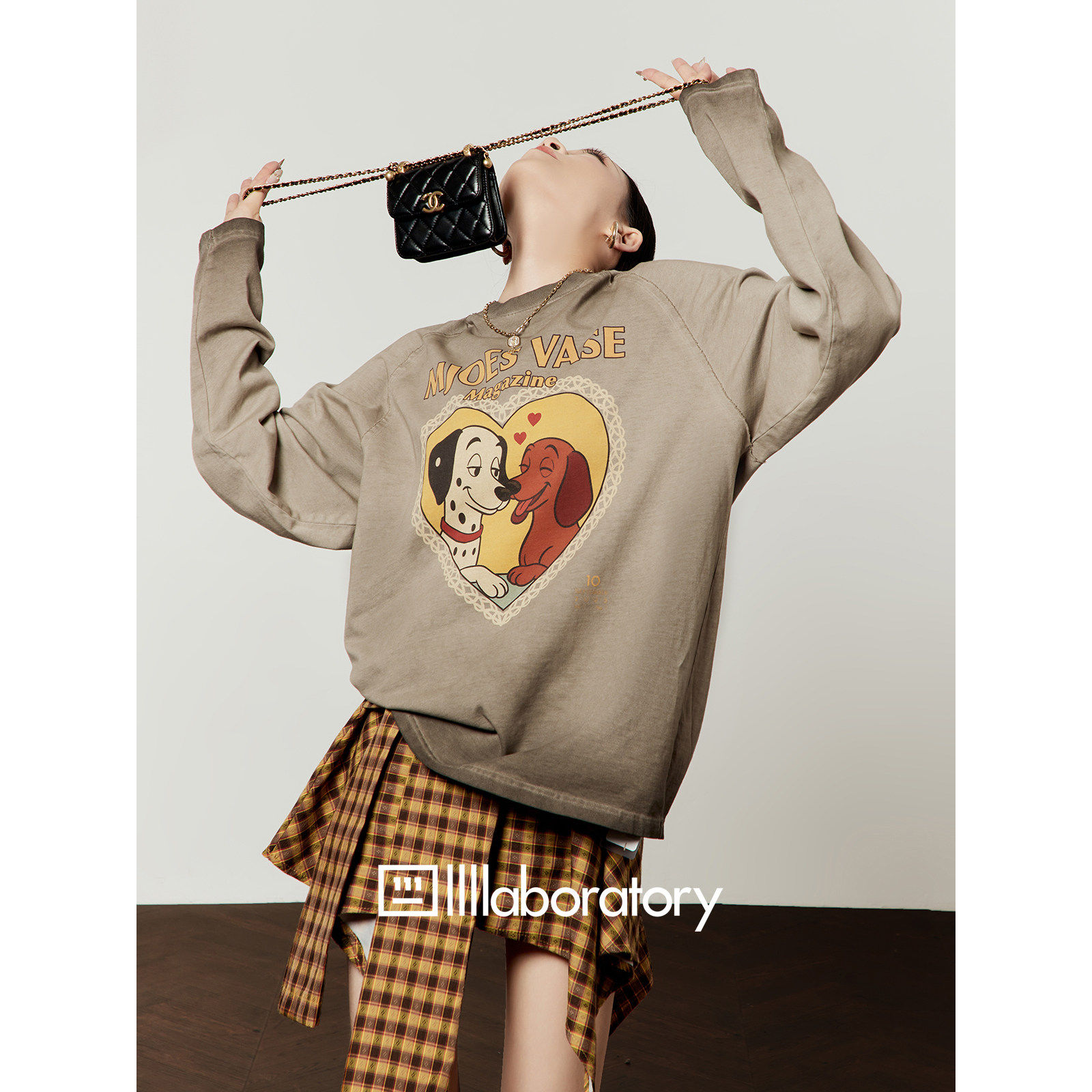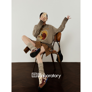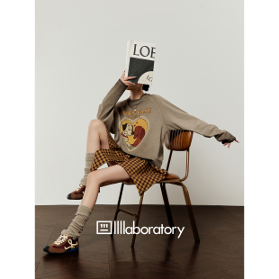 「周里物出品」咖啡色T恤女2026春季 印花宽松圆领慵懒风上衣 新款