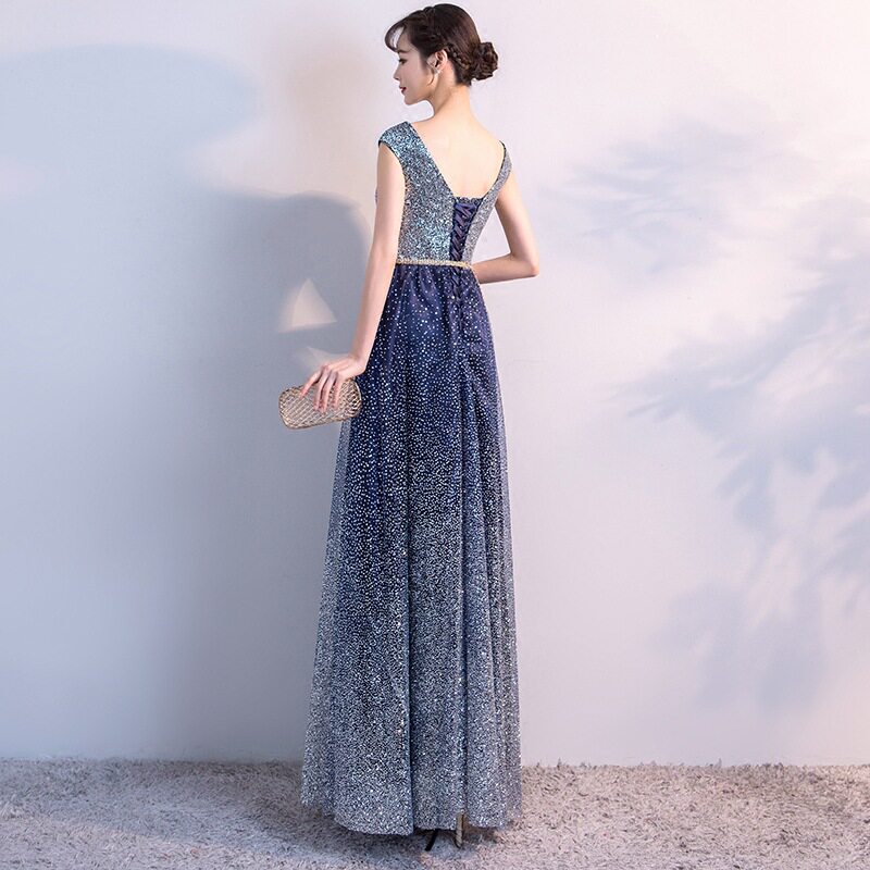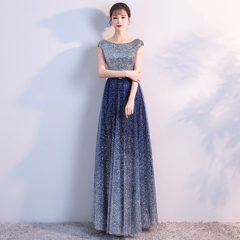 晚礼服女2020新款 主持人星空礼服夏 端庄大气优雅宴会派对名媛长款