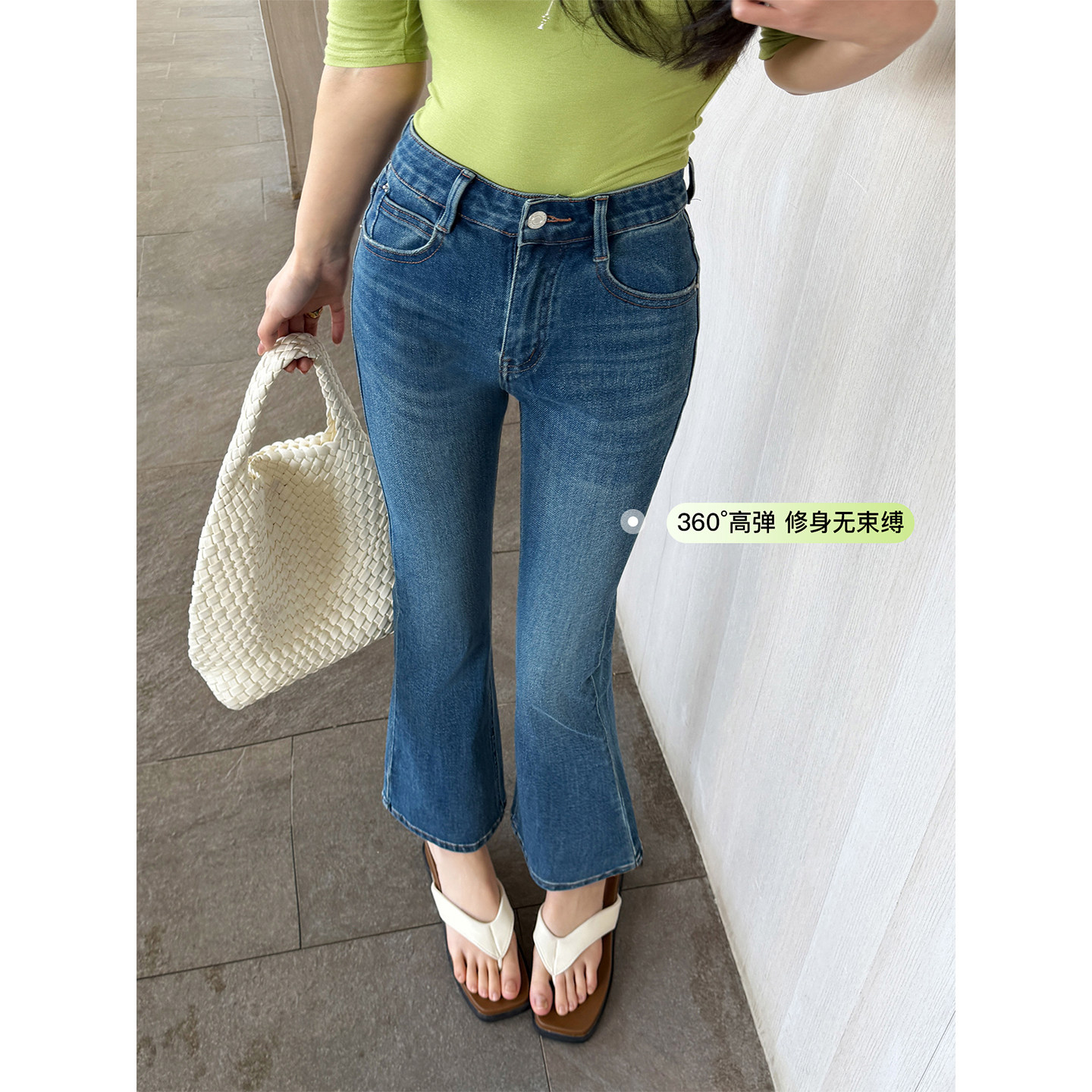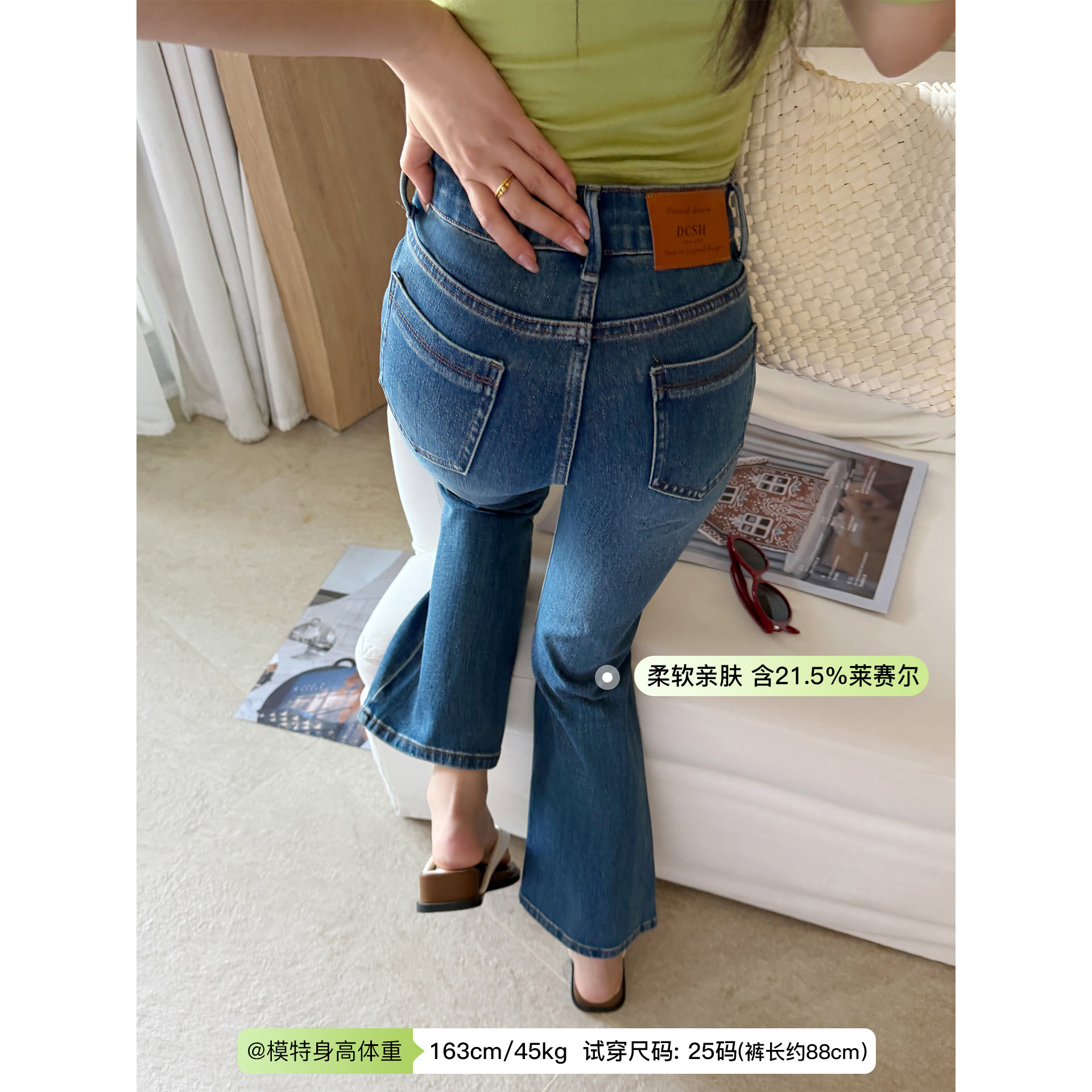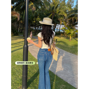 蓝色提臀显瘦高弹力九分喇叭裤 莱赛尔面料 女春季 微喇牛仔裤 修身