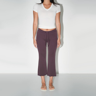 女时髦百搭低腰裤 WellD 长裤 超柔低腰微喇散边8分裤 子 黄油系列