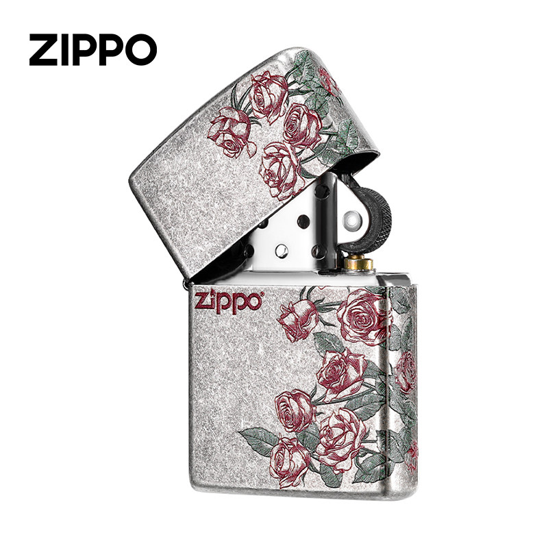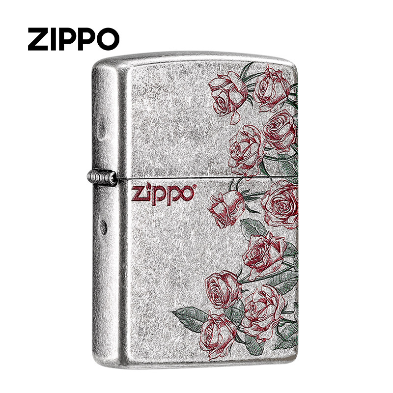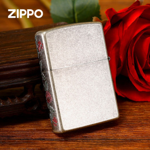 zippo打火机正版 生日告白情人节春节礼物送男友 古银热恋玫瑰