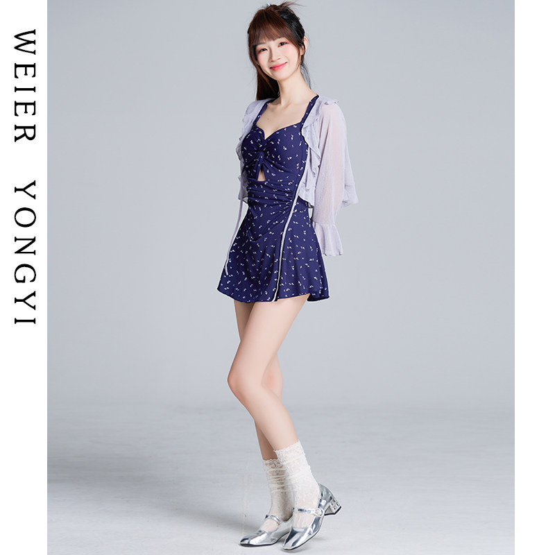 保守微胖遮肉显瘦小胸聚拢温泉泳装 泳衣女2026新款 高级感连体裙式