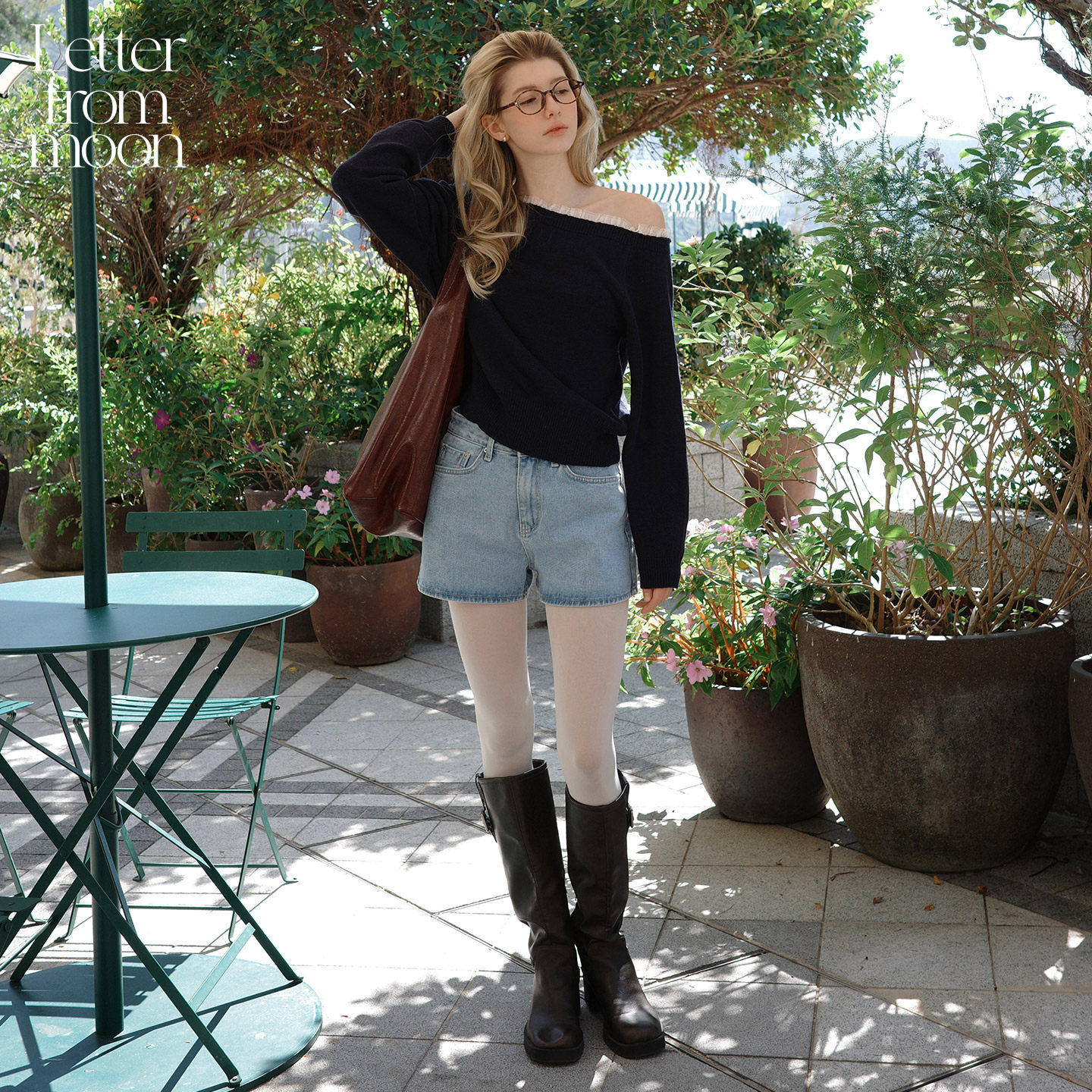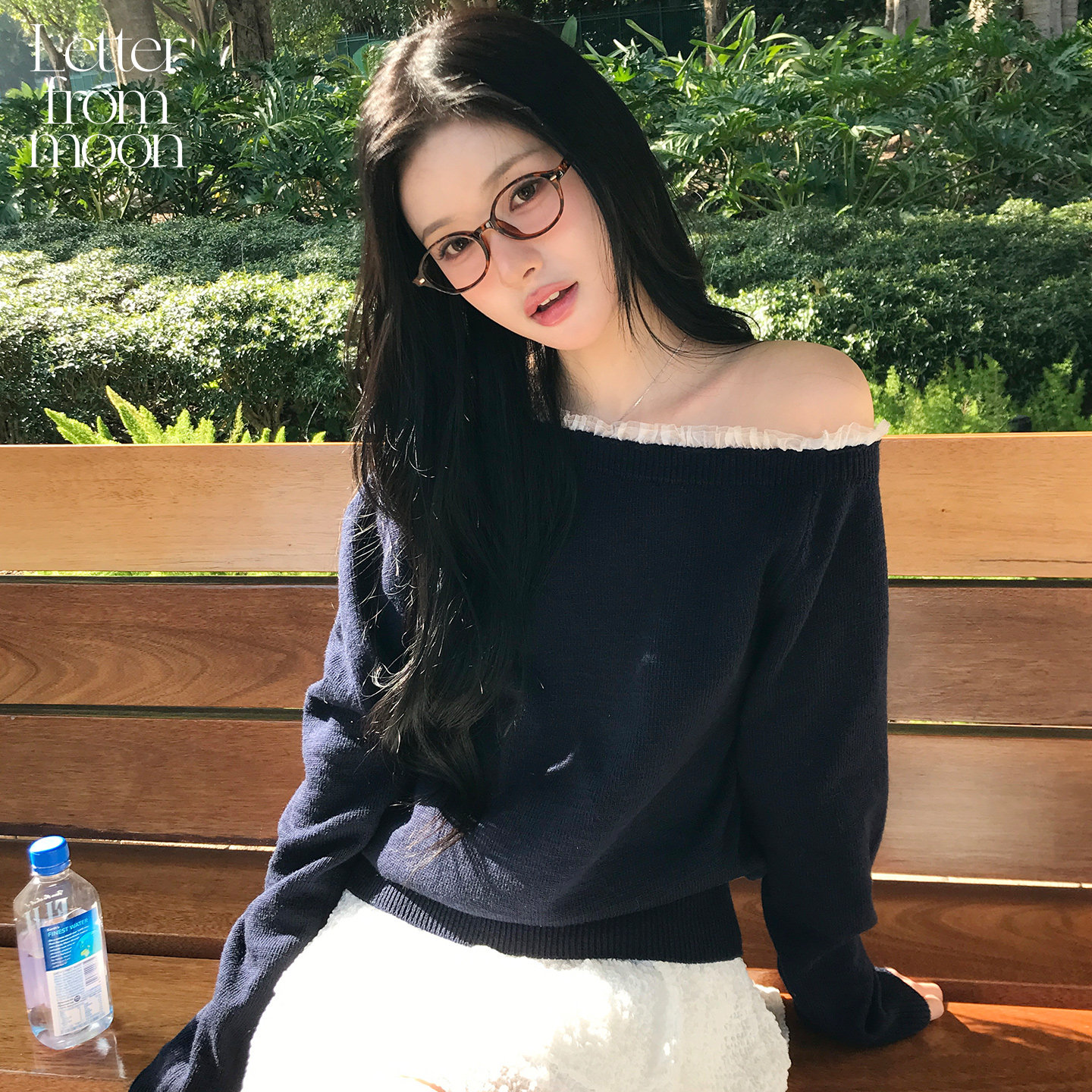 Letter 蕾丝斜肩针织衫 from 2026新款 性感上衣 moon 白逸帆同款