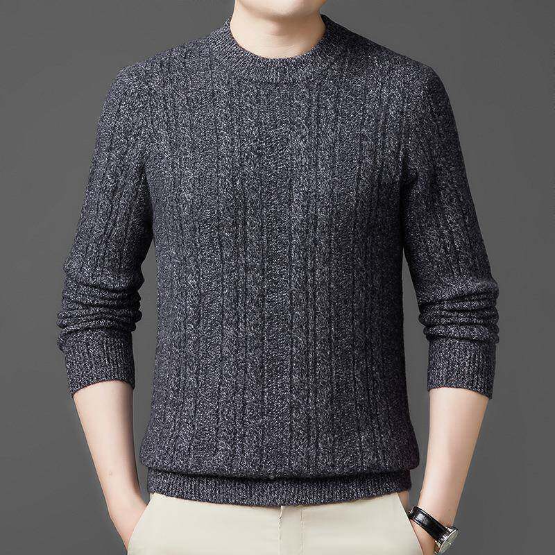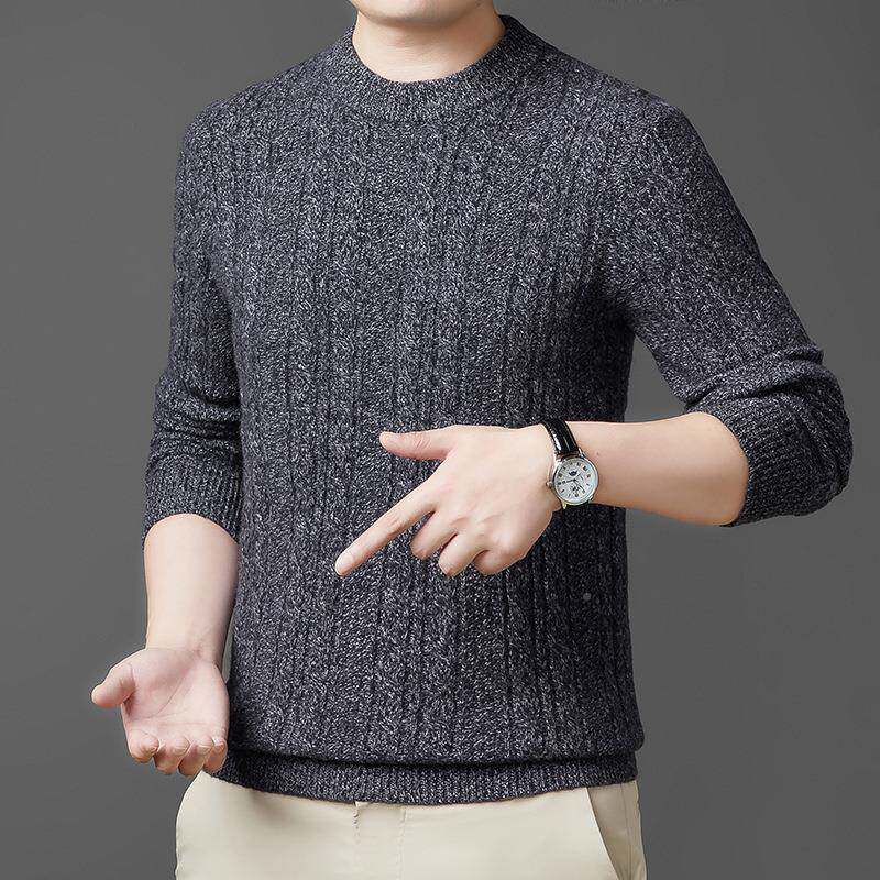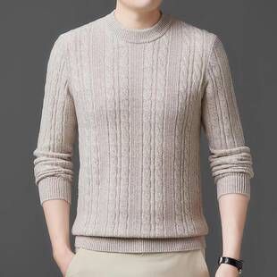 针织衫 纯色长袖 平圆方中半高领毛衣套头衫 男 羊绒羊毛打底薄款