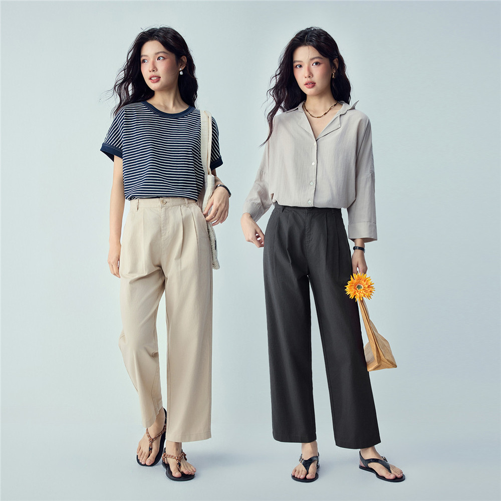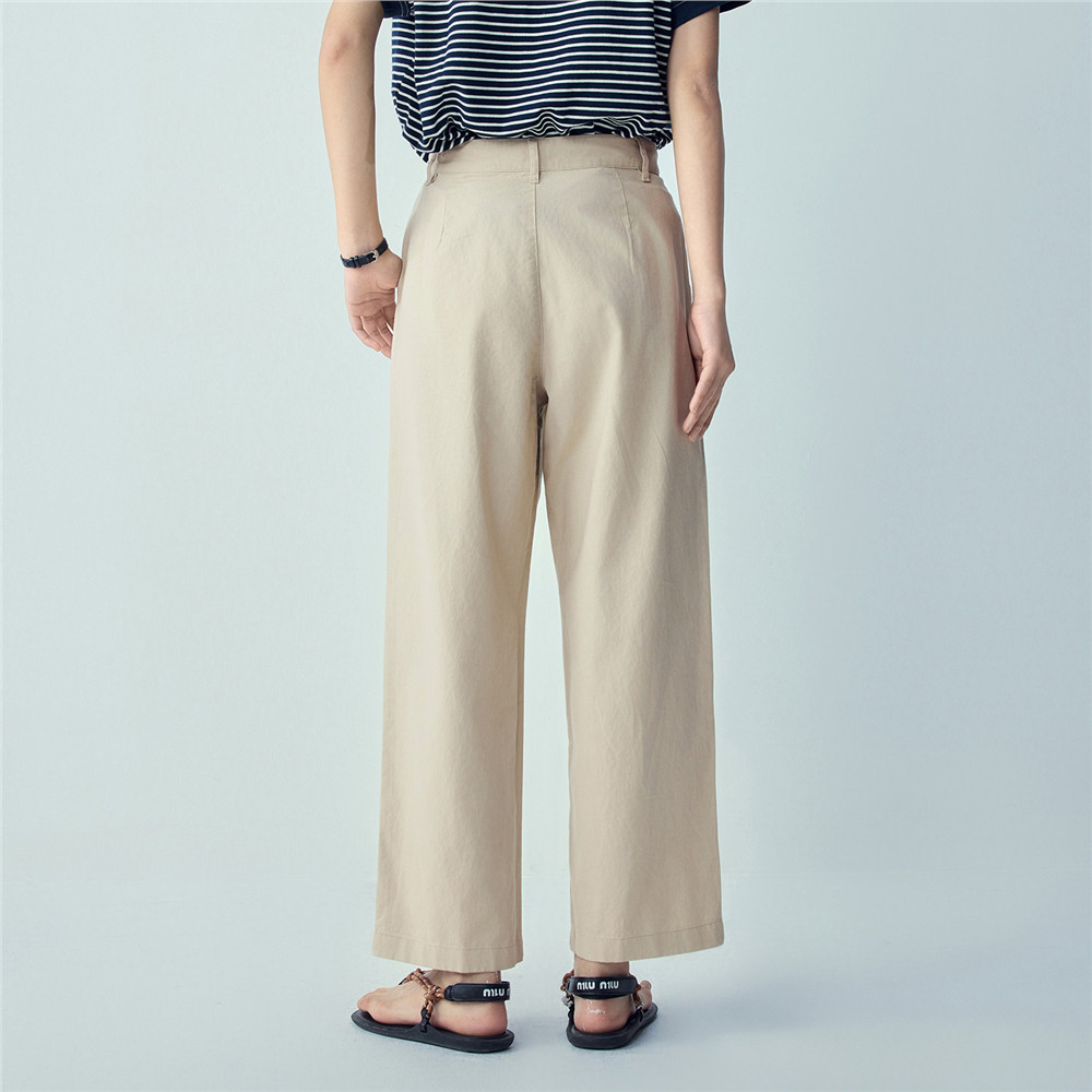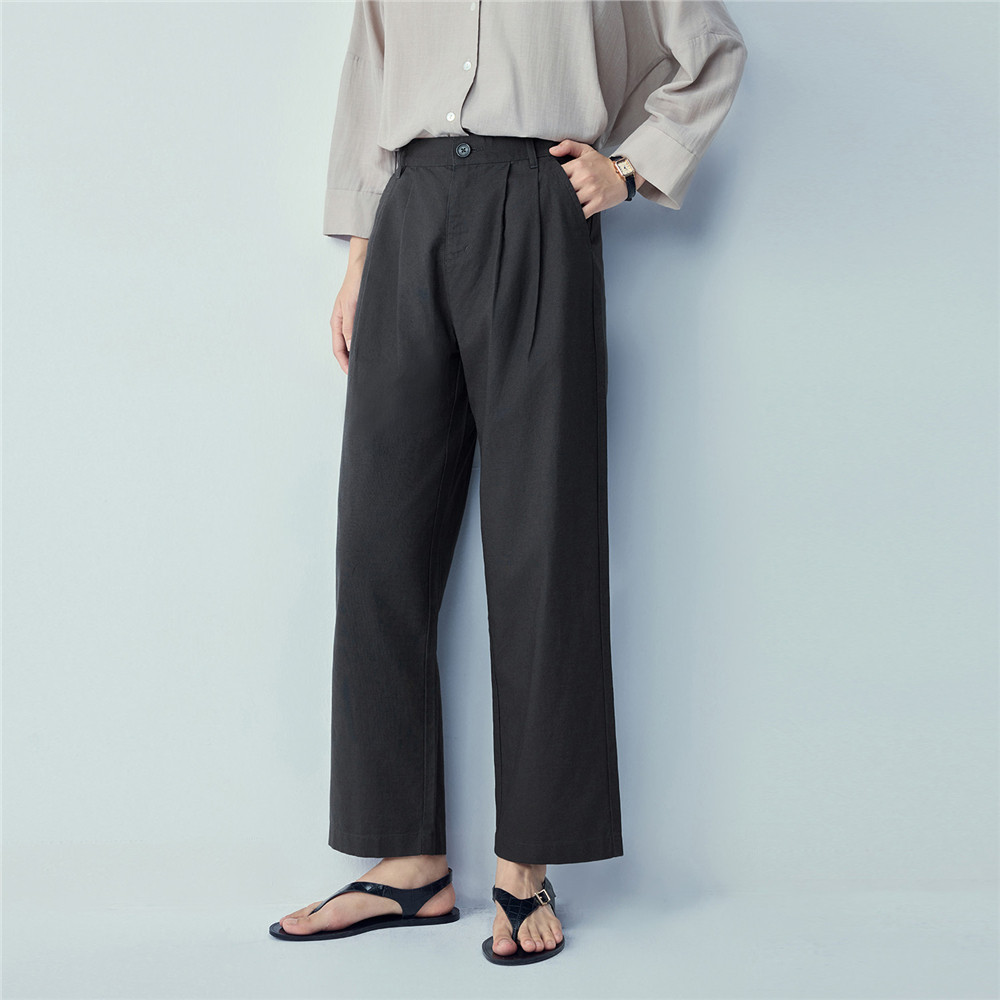 05426333 棉麻通勤压褶高腰直筒九分裤 佐丹奴亚麻裤 子女2026年春季
