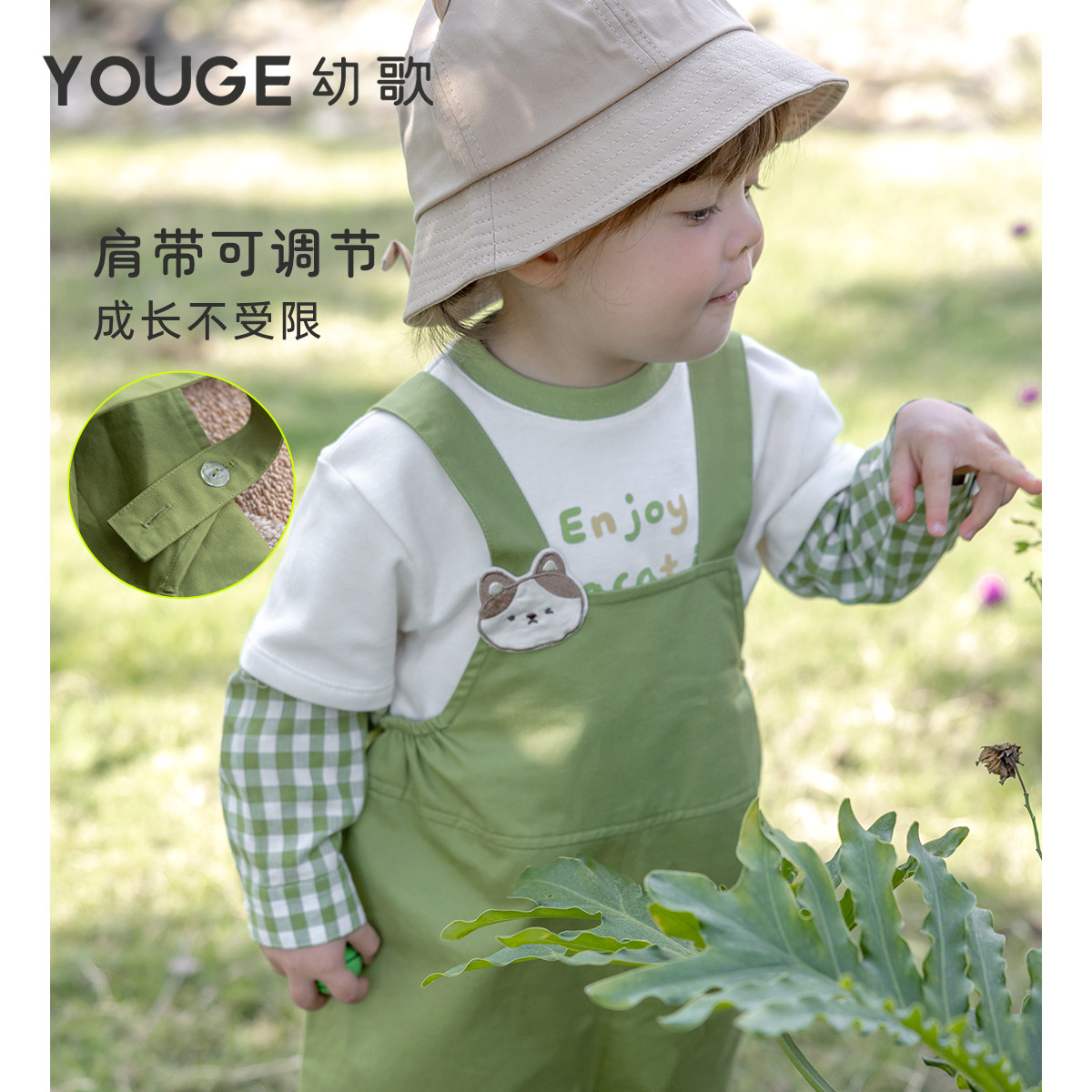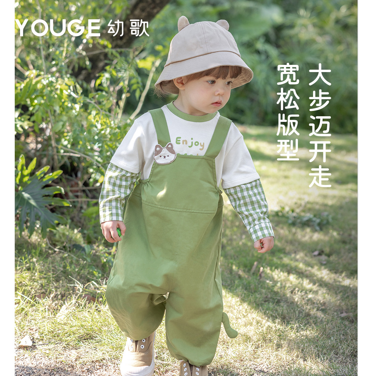 中小童宽松活力百搭背带裤 YOUGE幼歌 卡通小狗全棉束脚裤 新品 春季
