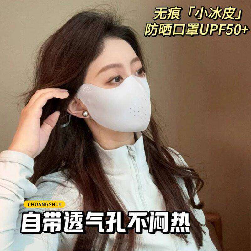 无痕小凉皮防晒口罩女夏季 护眼角紫外线轻薄透气速干面罩立体HWJ
