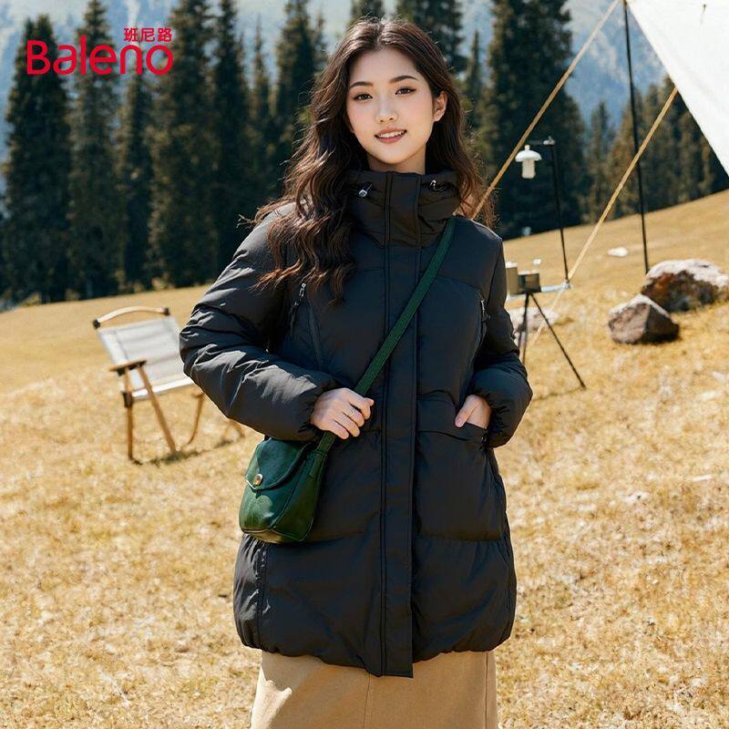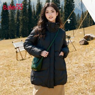 羽绒服鸭绒保暖女装 中长款 连帽茧型羽绒外套Z 新款 班尼路2025冬季