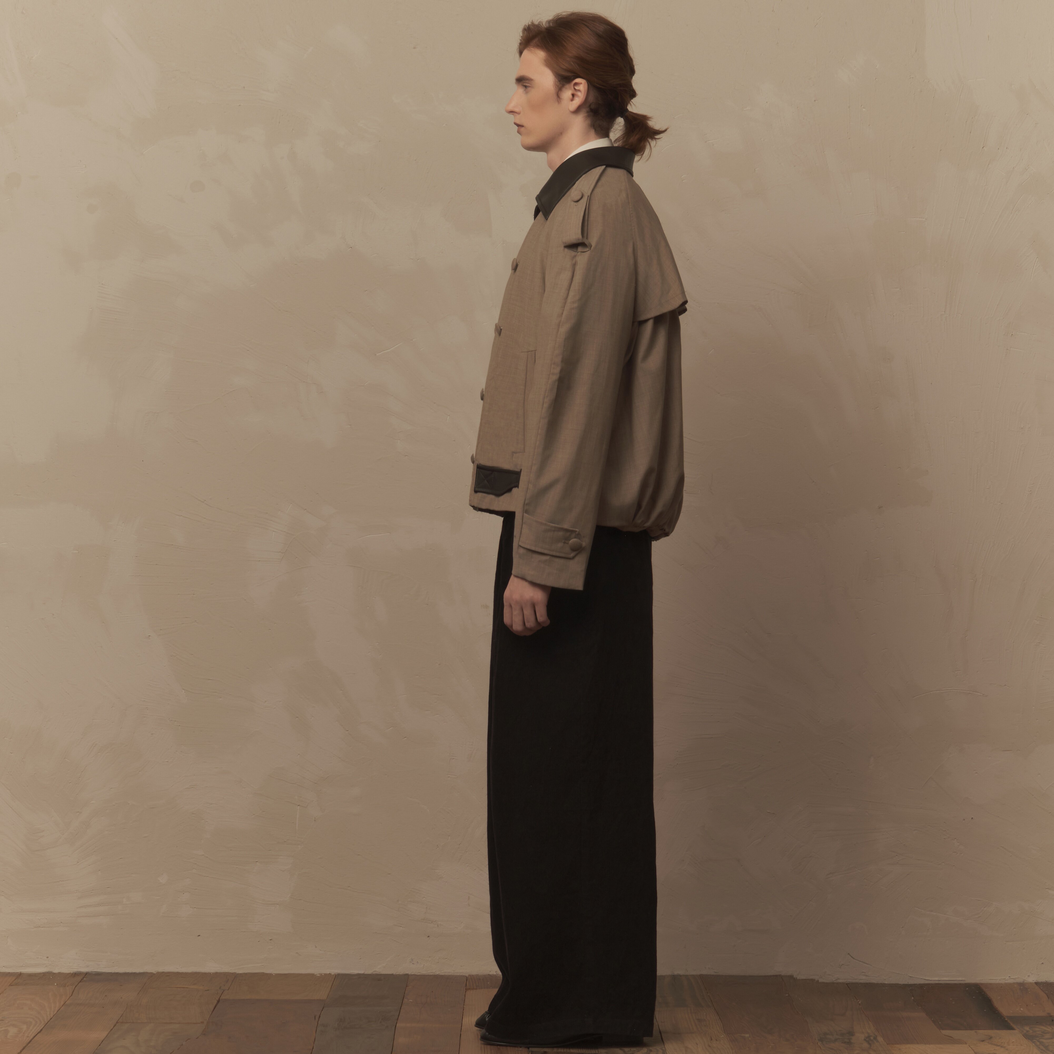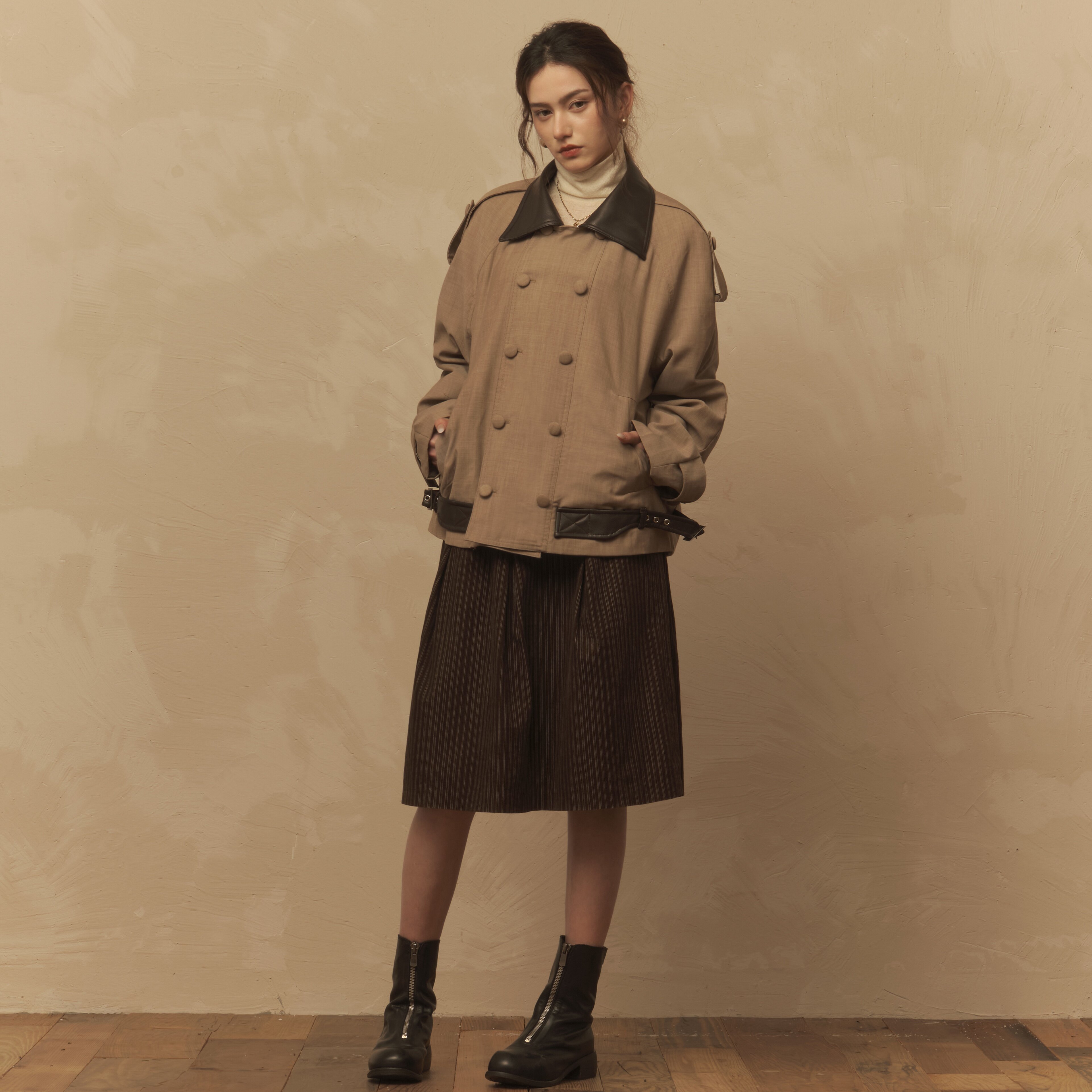意大利进口纯初剪羊毛皮领廓形双排短风衣 唐顿庄园 TAM TUAS