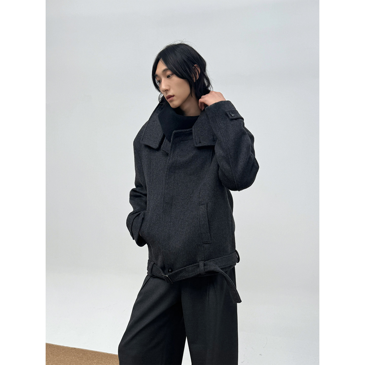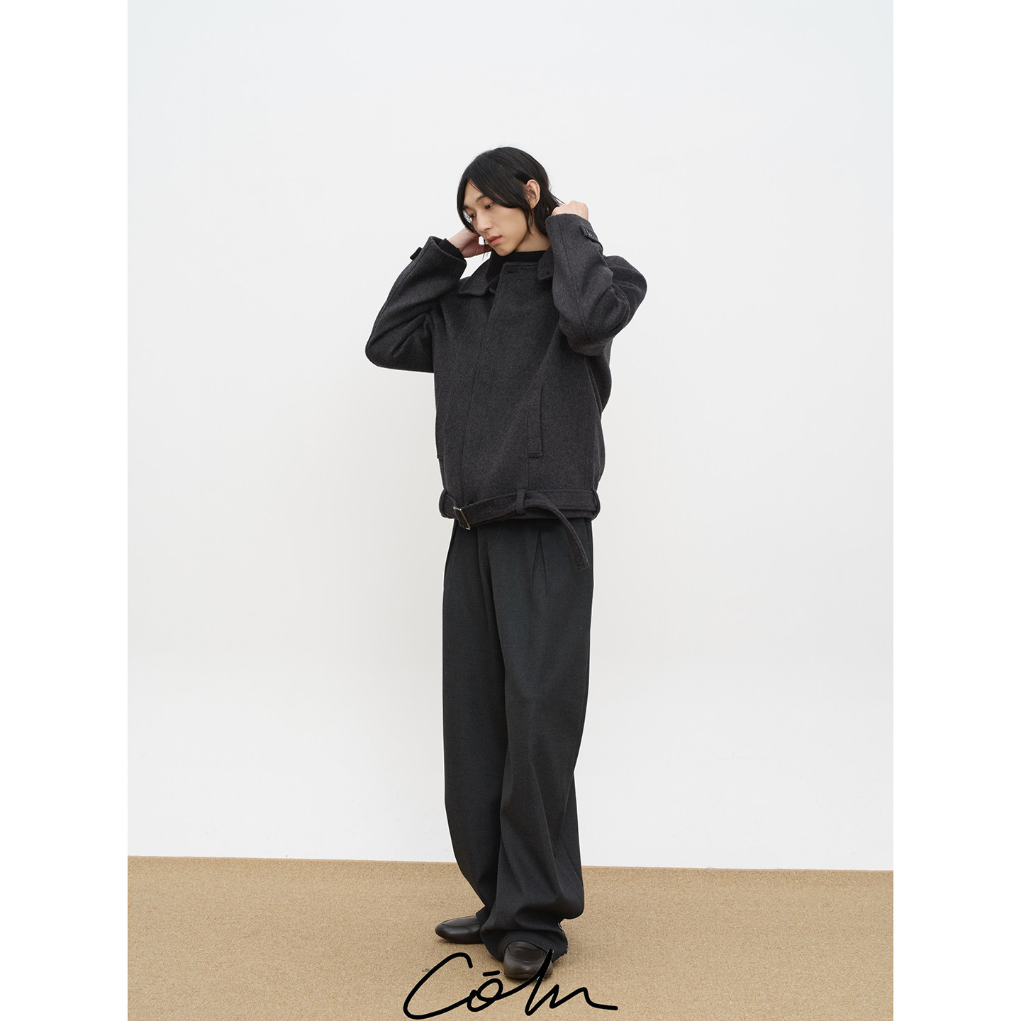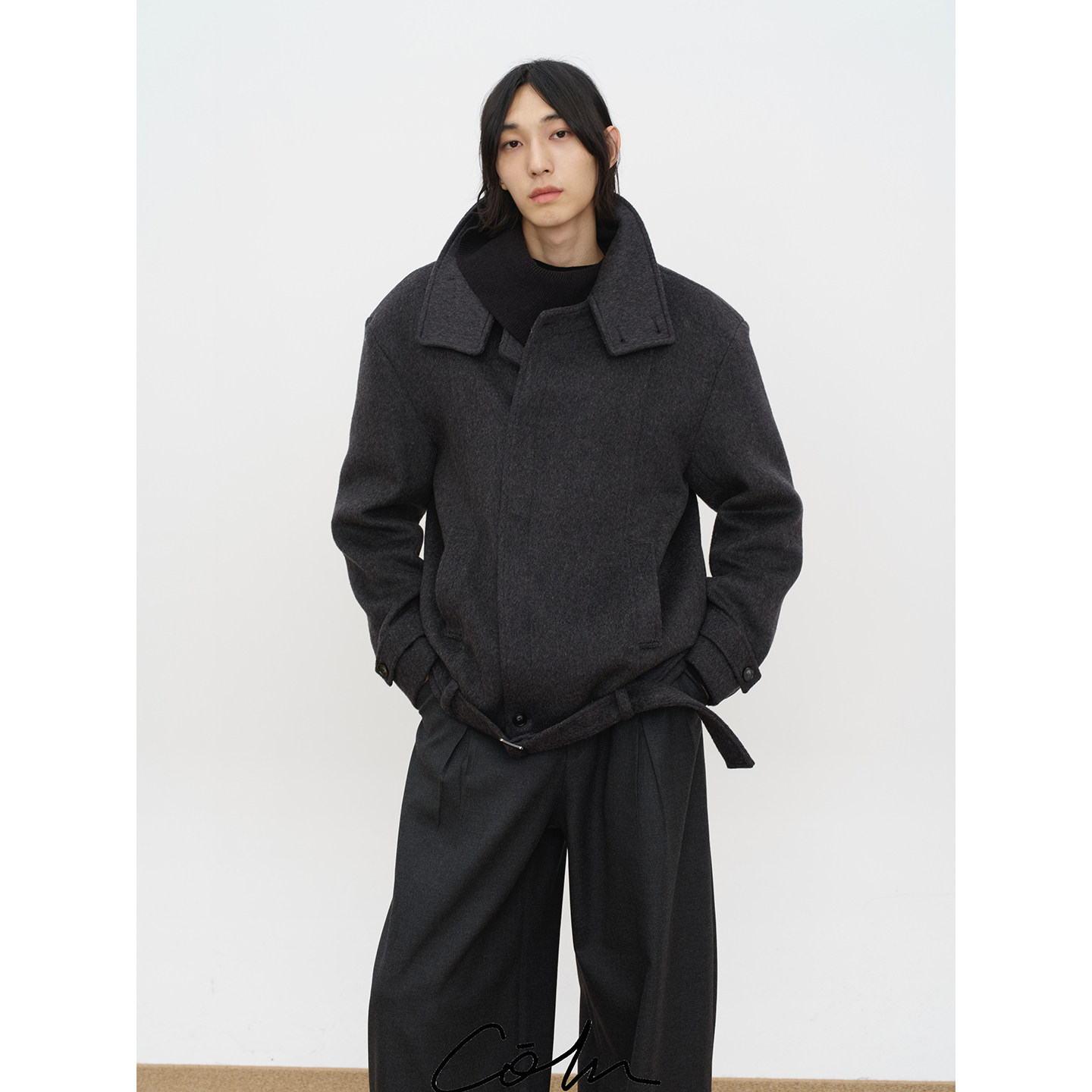 COLN翻领系带大衣 衣架 高领一竖便是生人勿近腰带一束便是行走