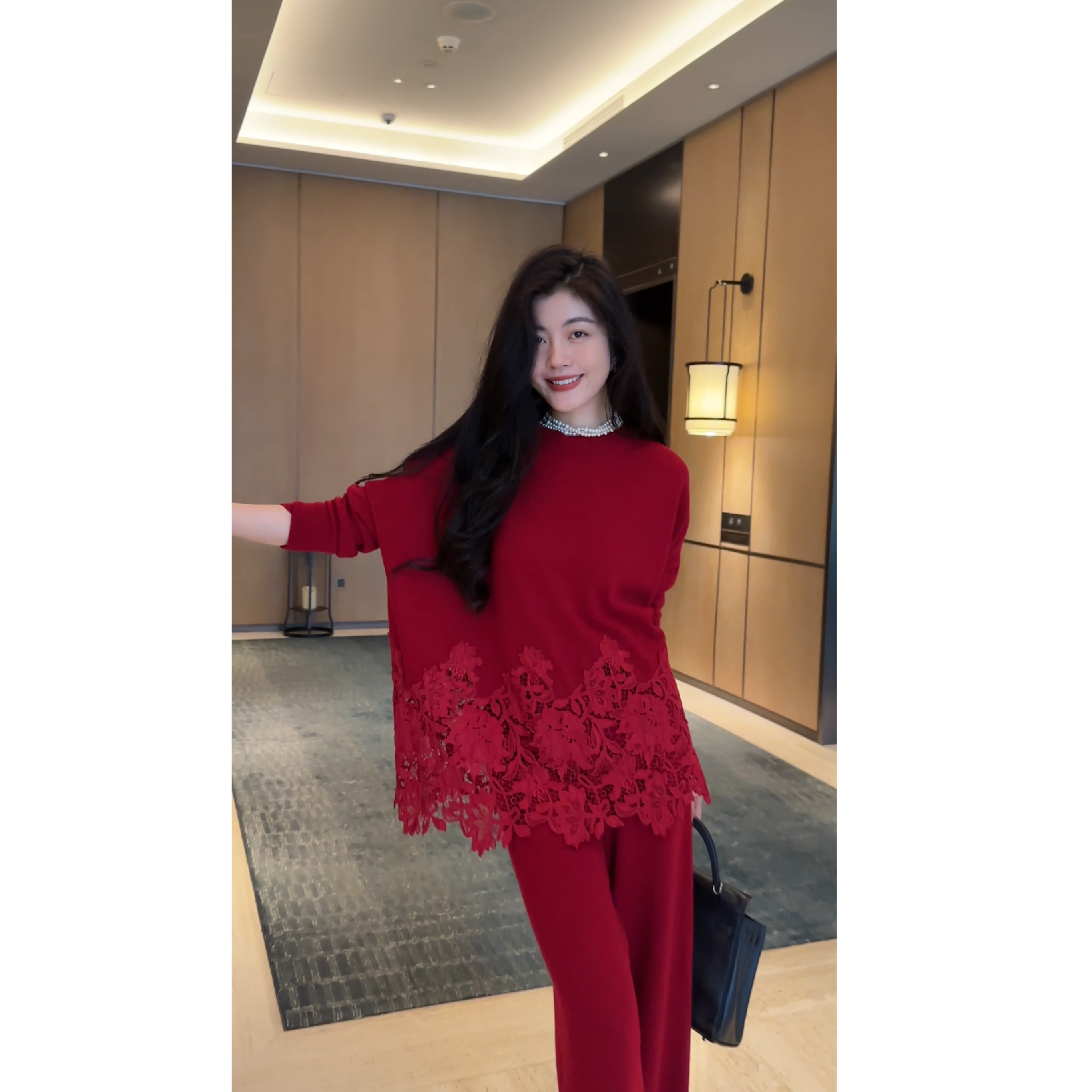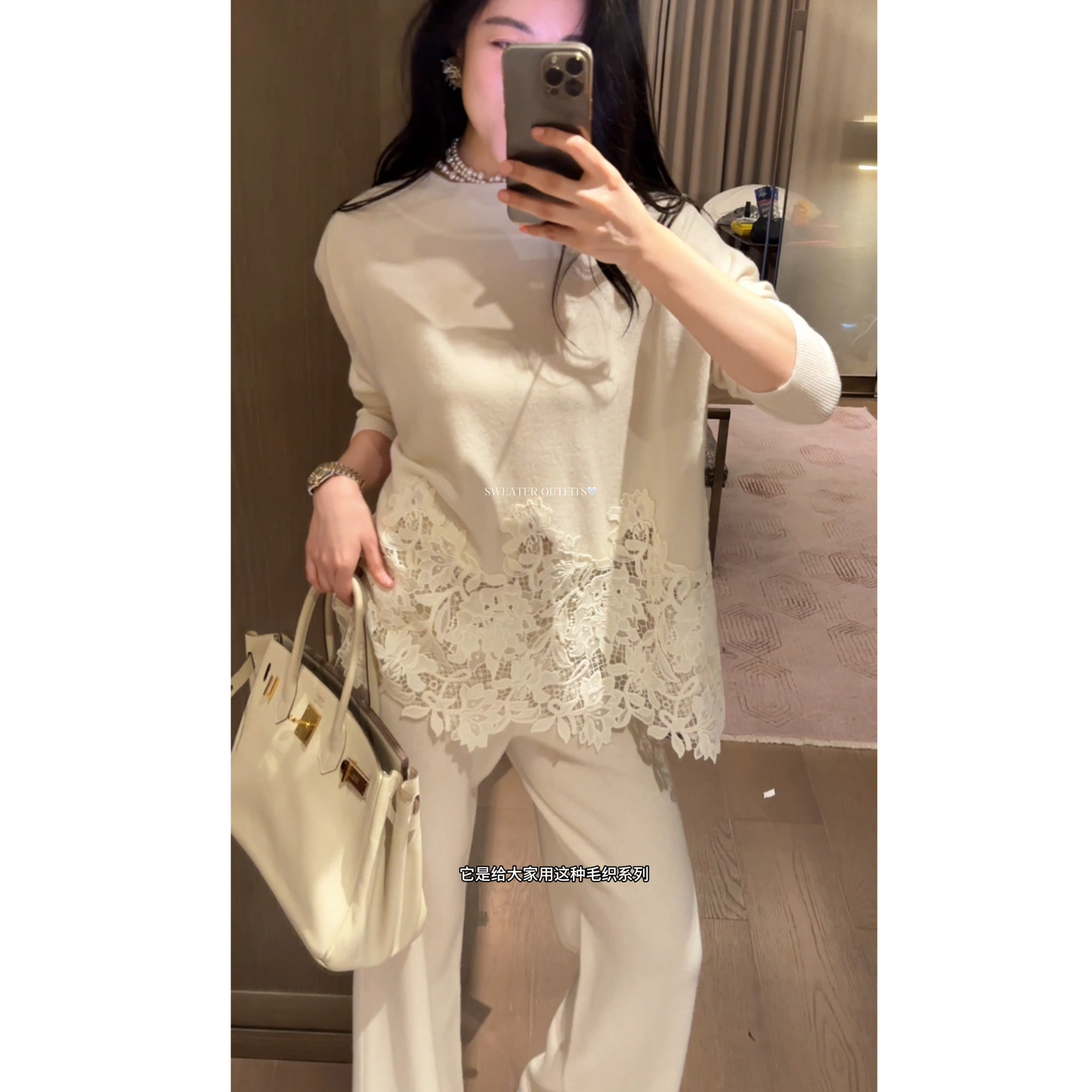 N.COU妮蔻26春新款 时髦设计感显白慵懒蕾丝拼接下摆100绵羊毛套装