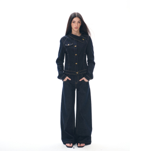 显瘦收腰牛仔外套短款 斜领扣修身 原牛色夹克 原创设计新款 Goosfir