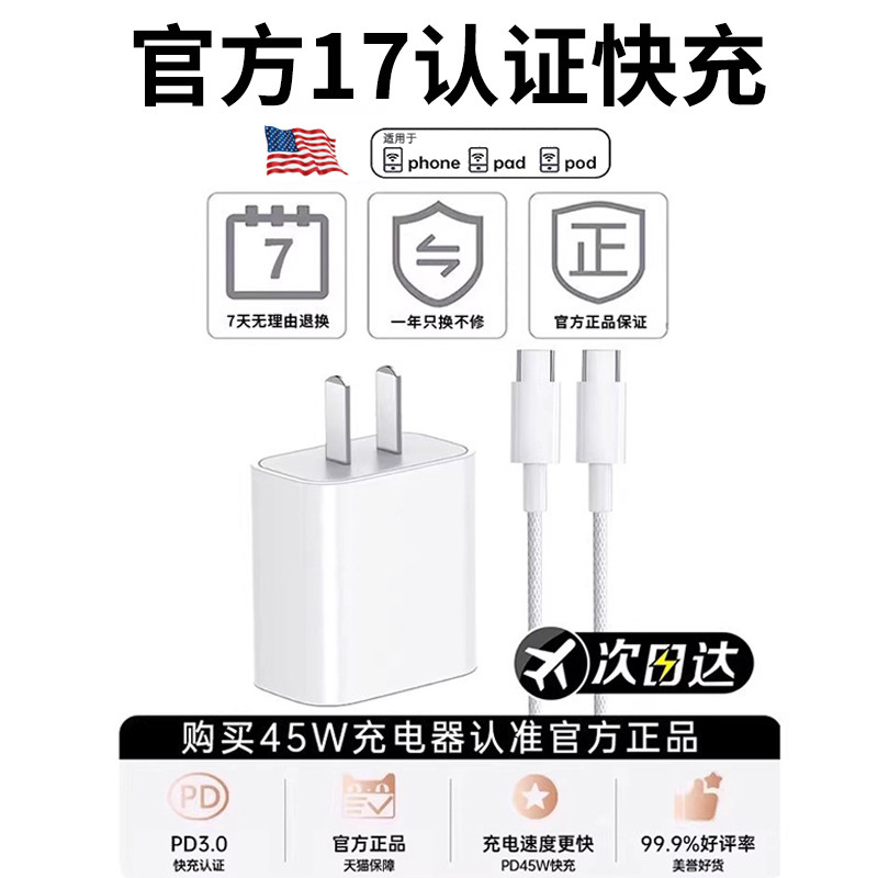 适用苹果17Promax充电器快充头17air手机编织线17pro套装 顺丰 官方45W快充 17新机首选 手机 国家3C