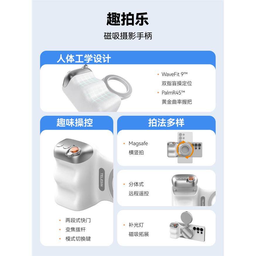 telesin泰迅趣拍乐磁吸助拍器适用苹果iphone华为安卓手机摄影手