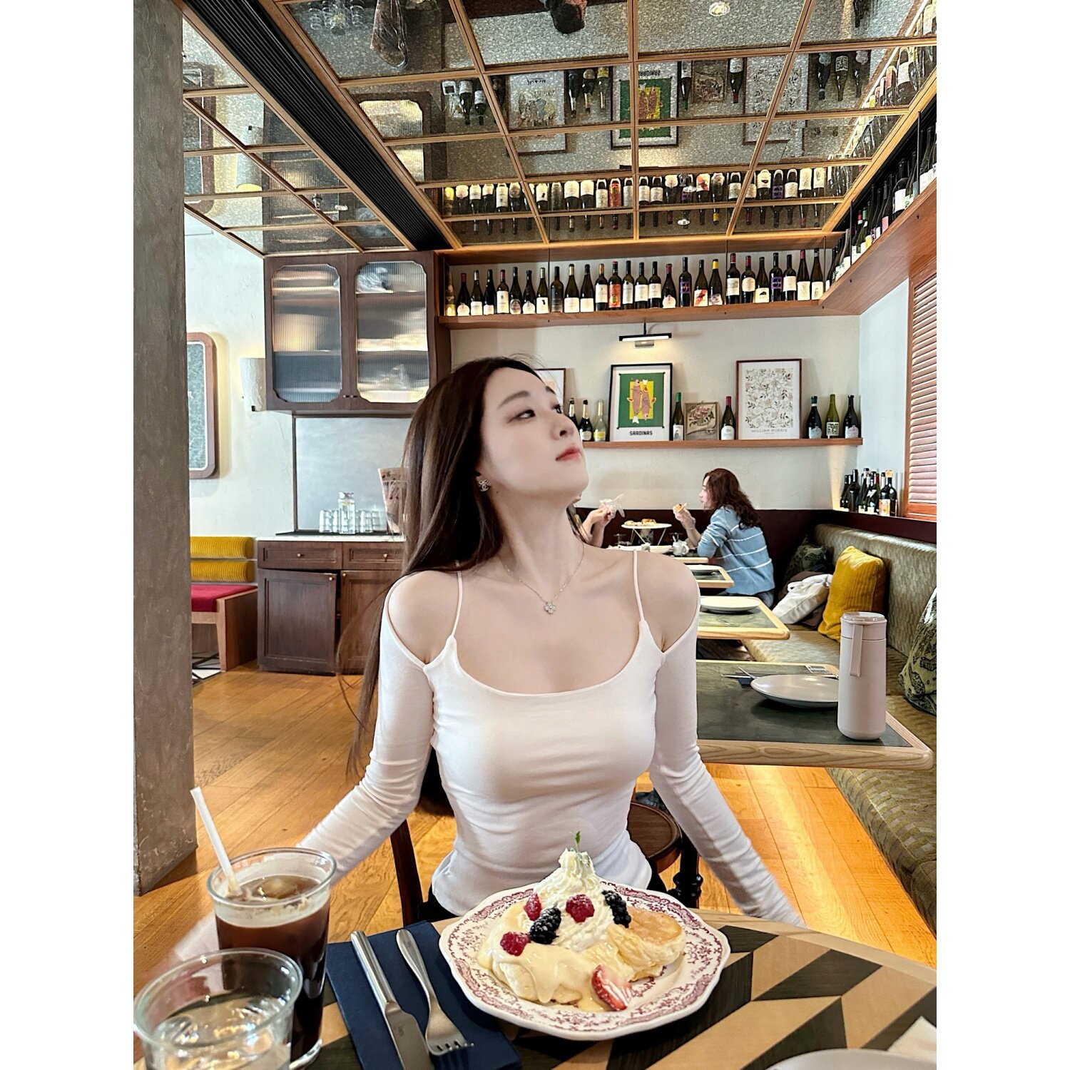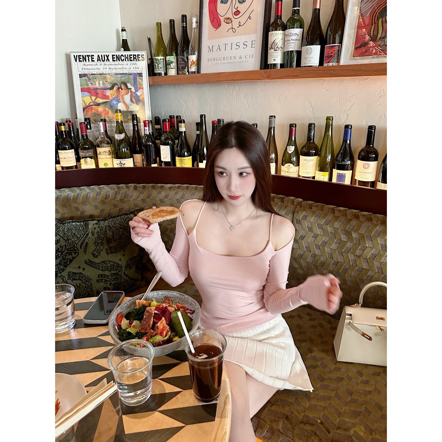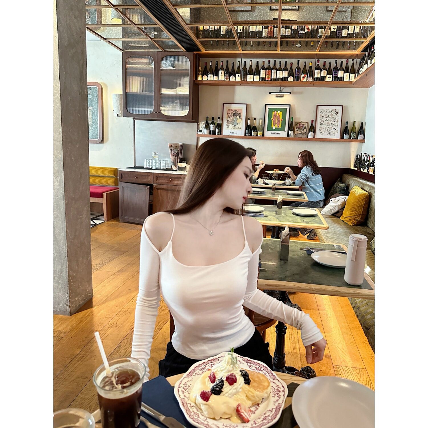 纯欲修身 漂亮肩颈线 zhazha 一字领大U领挂脖露肩白色T恤 Dear