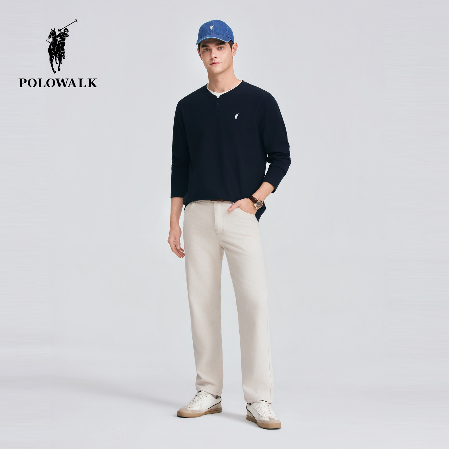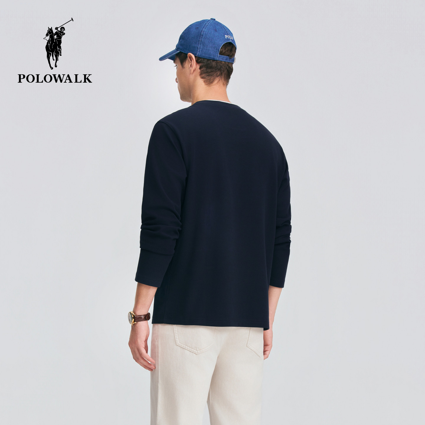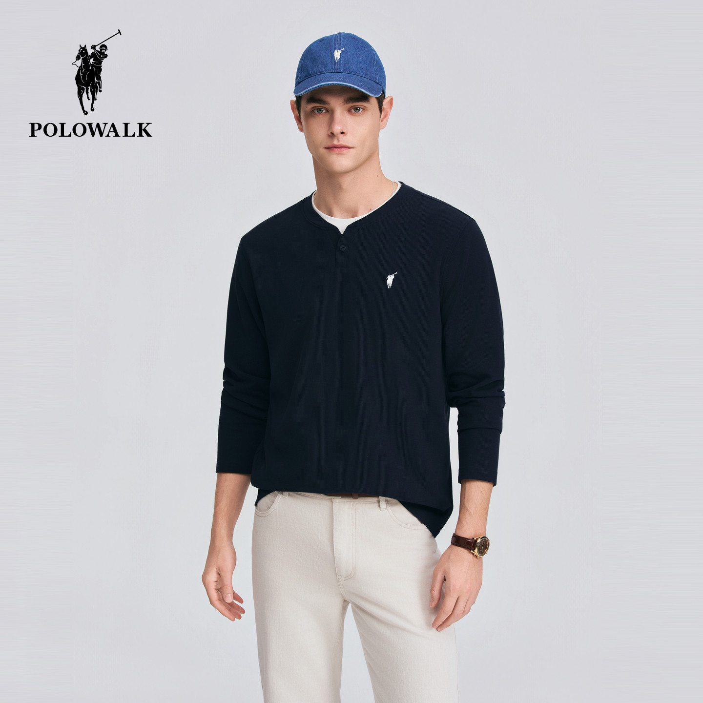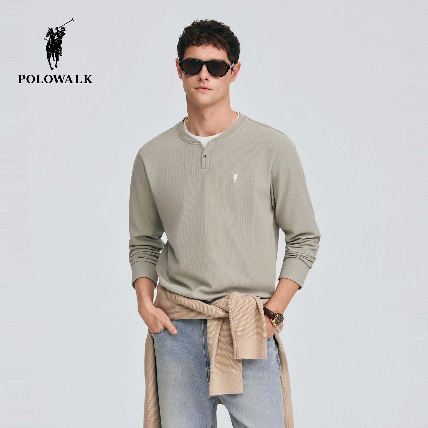 撞色双层亨利领长袖 POLOWALK男式 新品 T恤2026春季 套头上衣 长袖