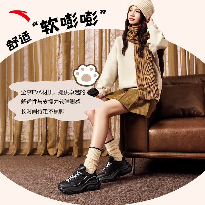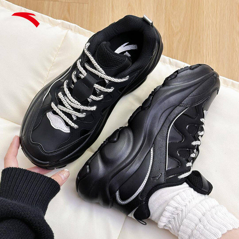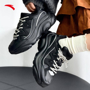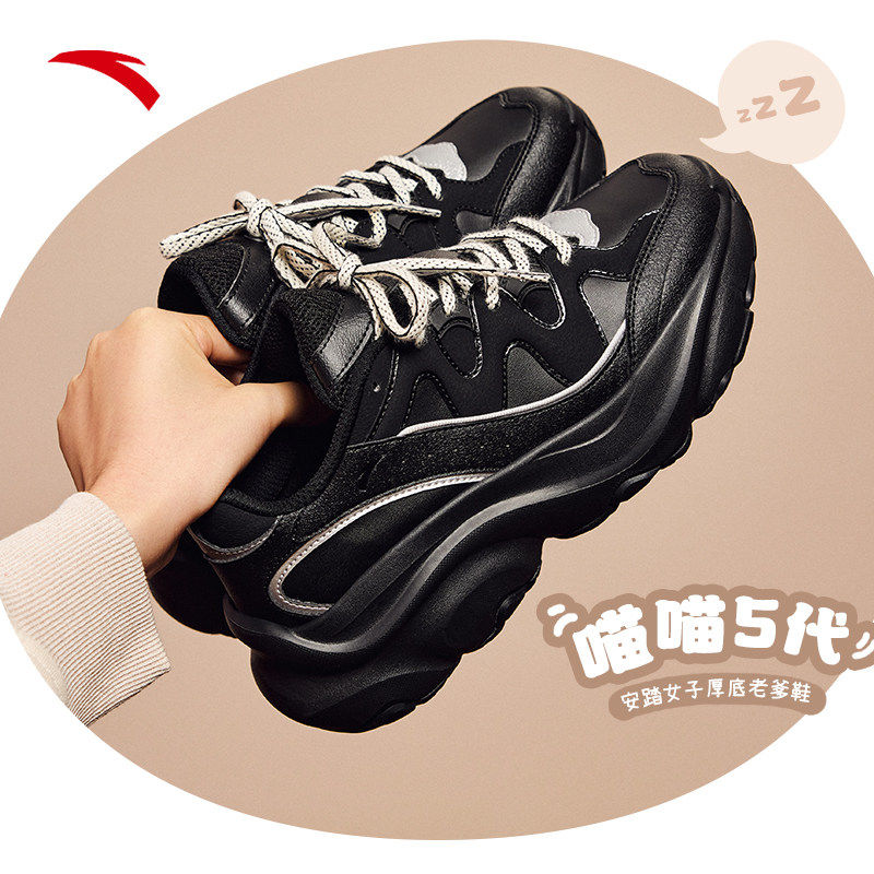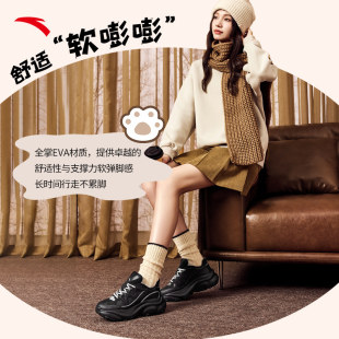 纯黑色轻便厚底增高休闲运动鞋 安踏喵喵鞋 2026新款 老爹鞋 子 5女鞋