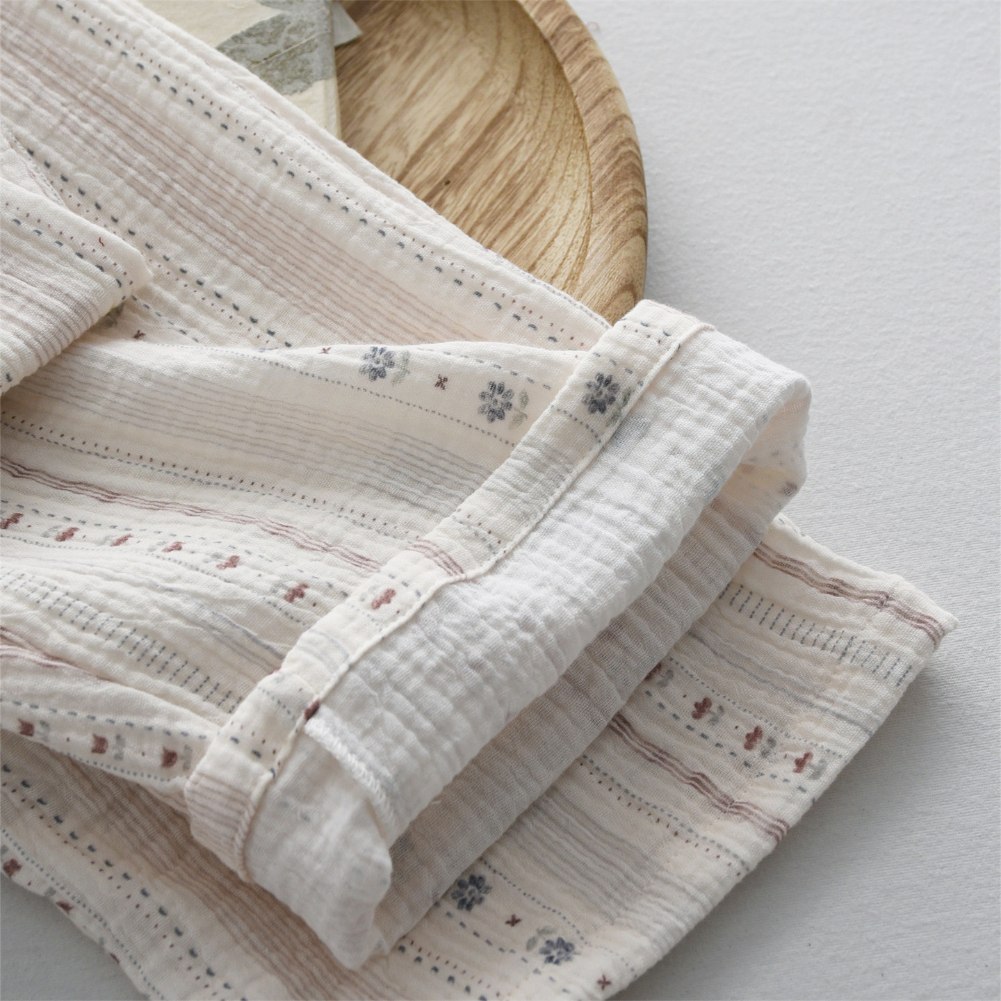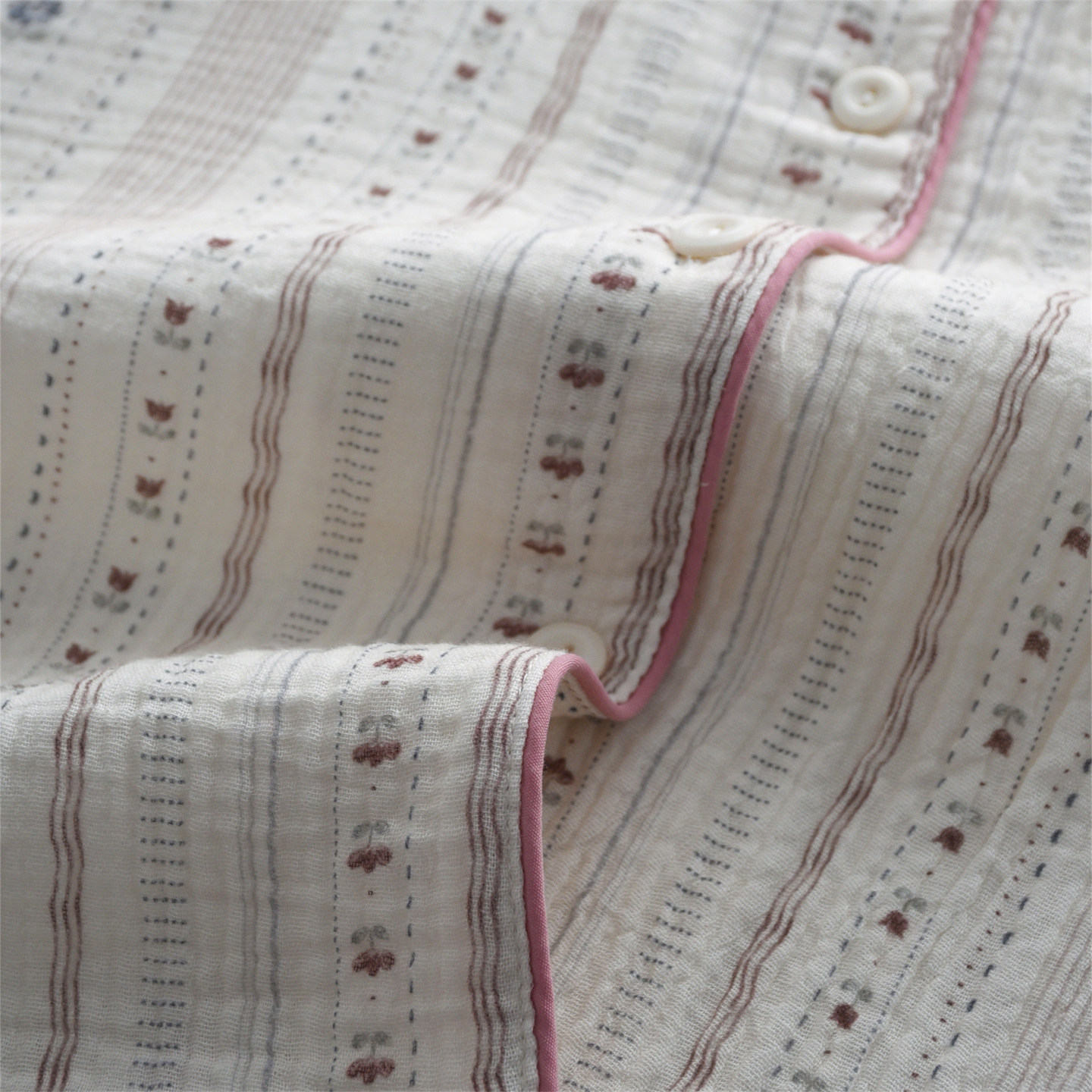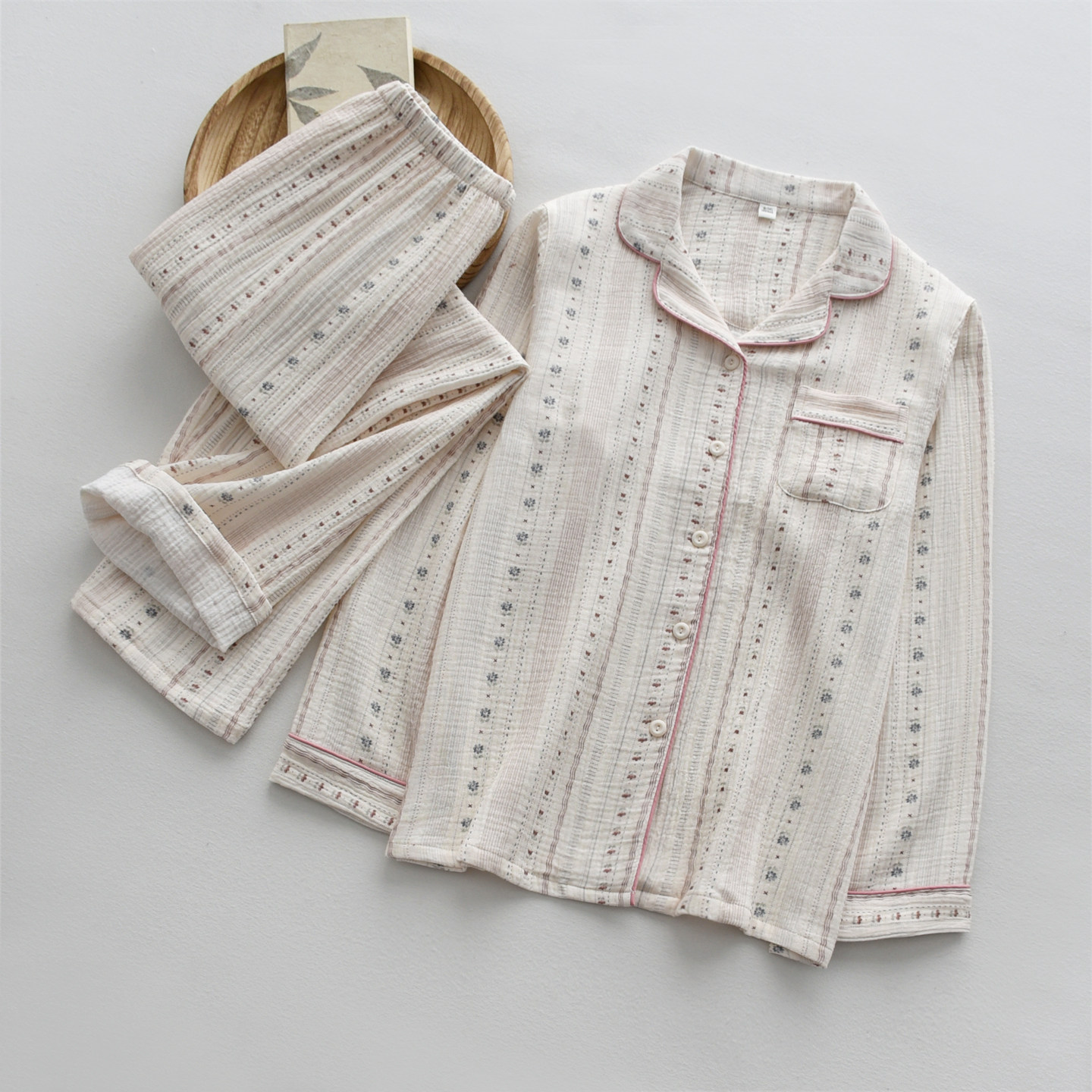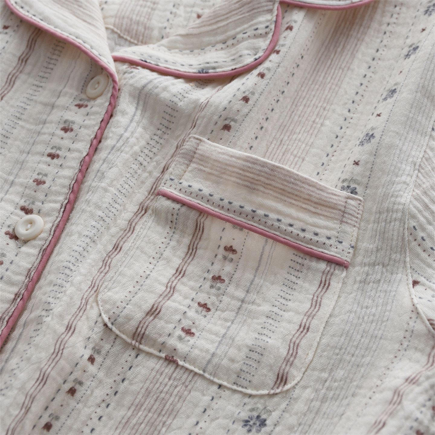纯棉纱布双层薄款 家居服套装 长袖 开衫 长裤 温柔系碎花睡衣女春夏季