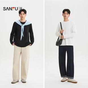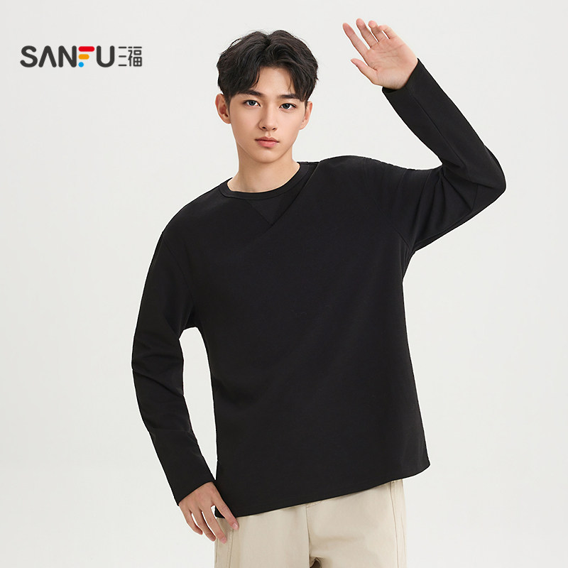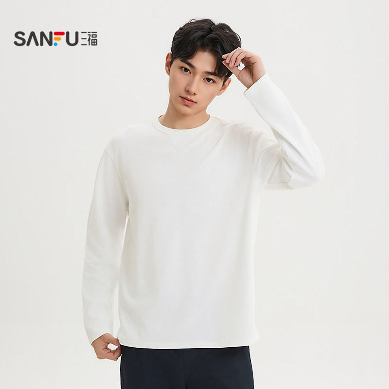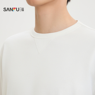 T恤男都市纯色宽松上衣518744 提花肌理感长袖 三福2026春季 新款