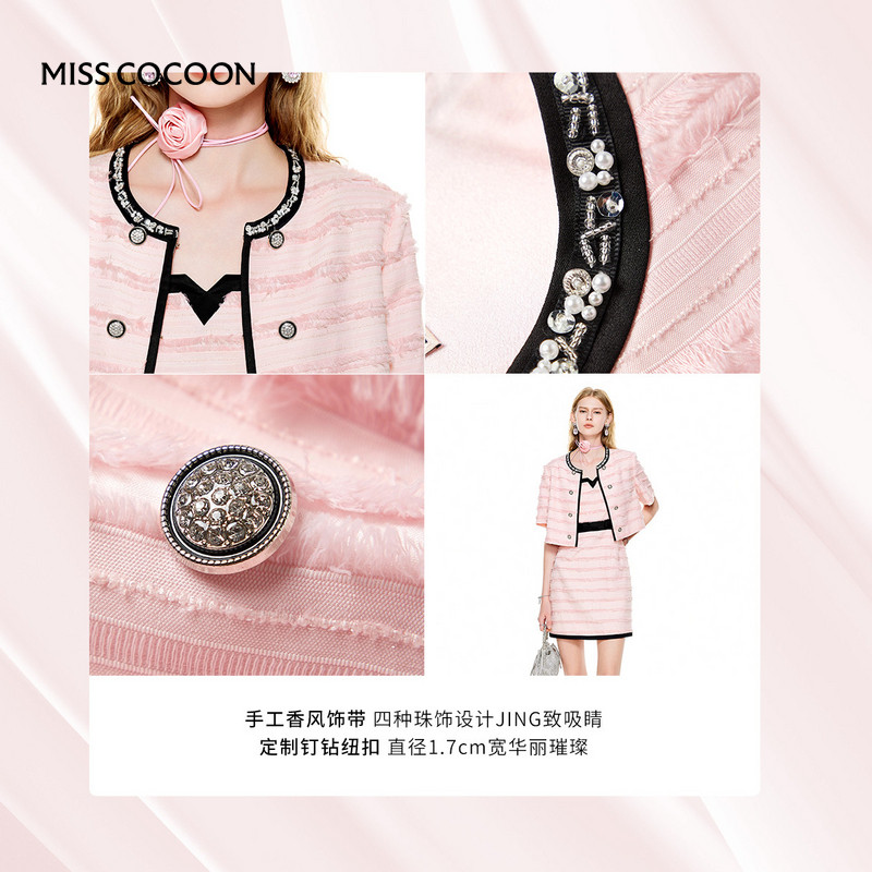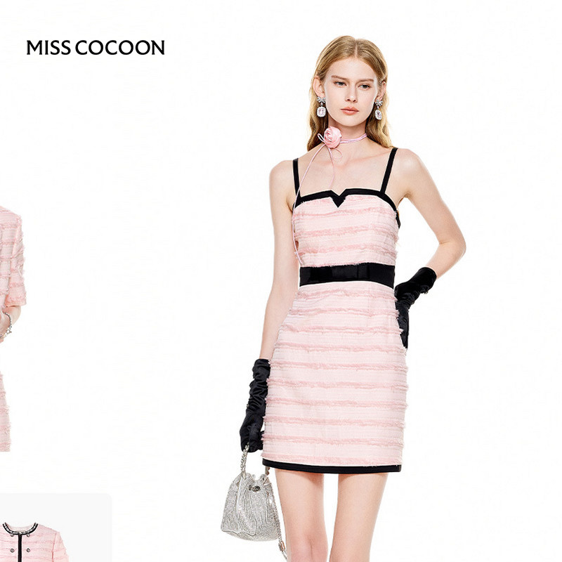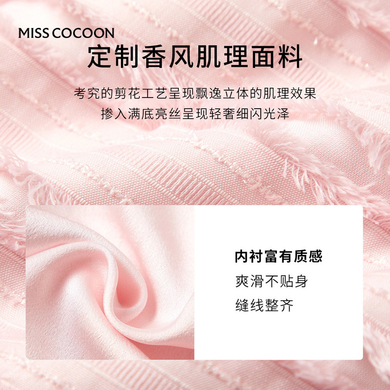 MISSCOCOON名媛小香风吊带连衣裙套装 手工珠链剪花工艺粉色