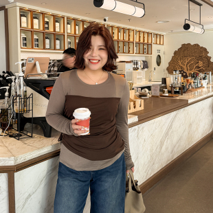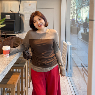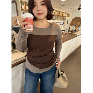 圆领长袖 女装 抽褶薄内搭200斤 木子理想大码 胖mm秋冬假两件打底衫