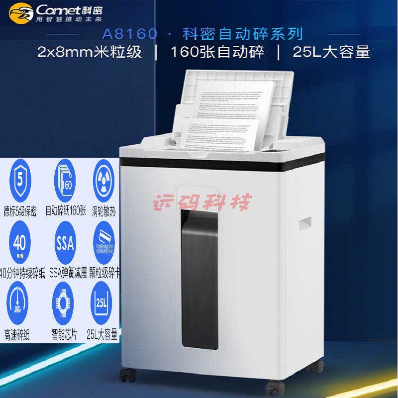 科密全自动碎纸机A8160全自动160张手动8张持续40分钟25L 5级保密