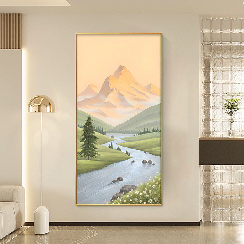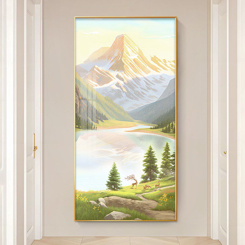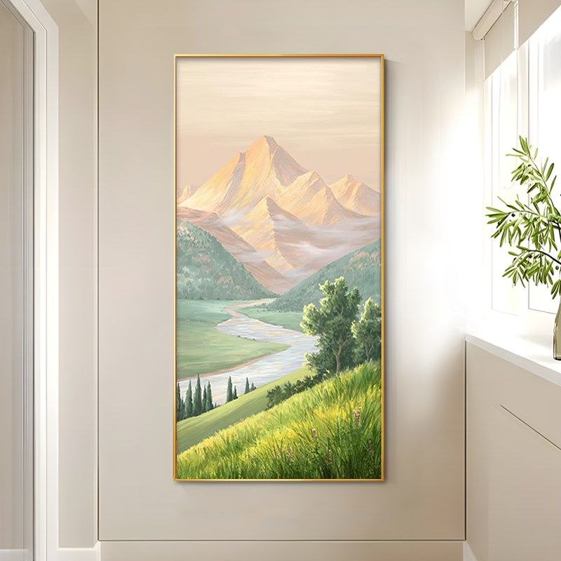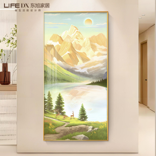 日照金山入户玄关装 饰画走廊过道简约挂画山水画手绘油画客厅壁画