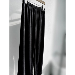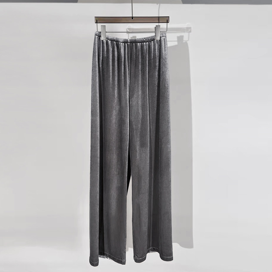 风骨行走中光感垂顺防静电不吸腿双口袋松紧腰金丝丝绒阔腿裤 D550