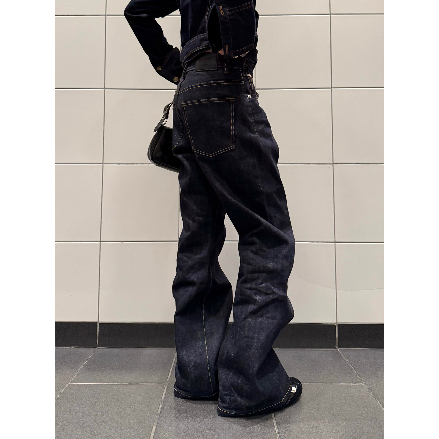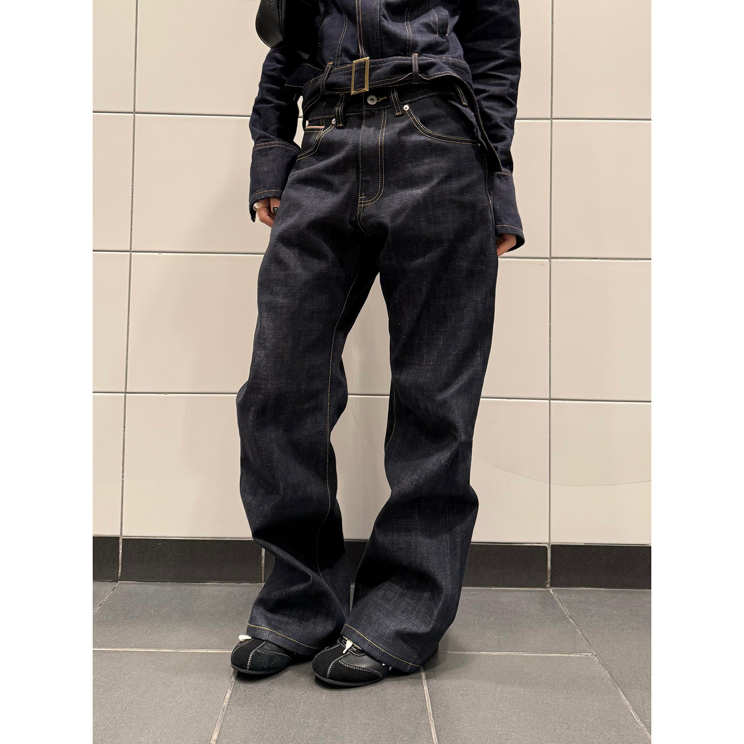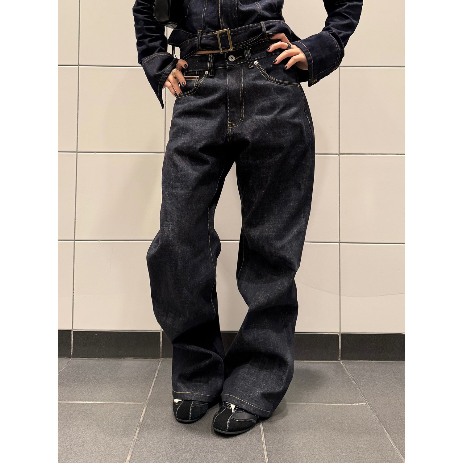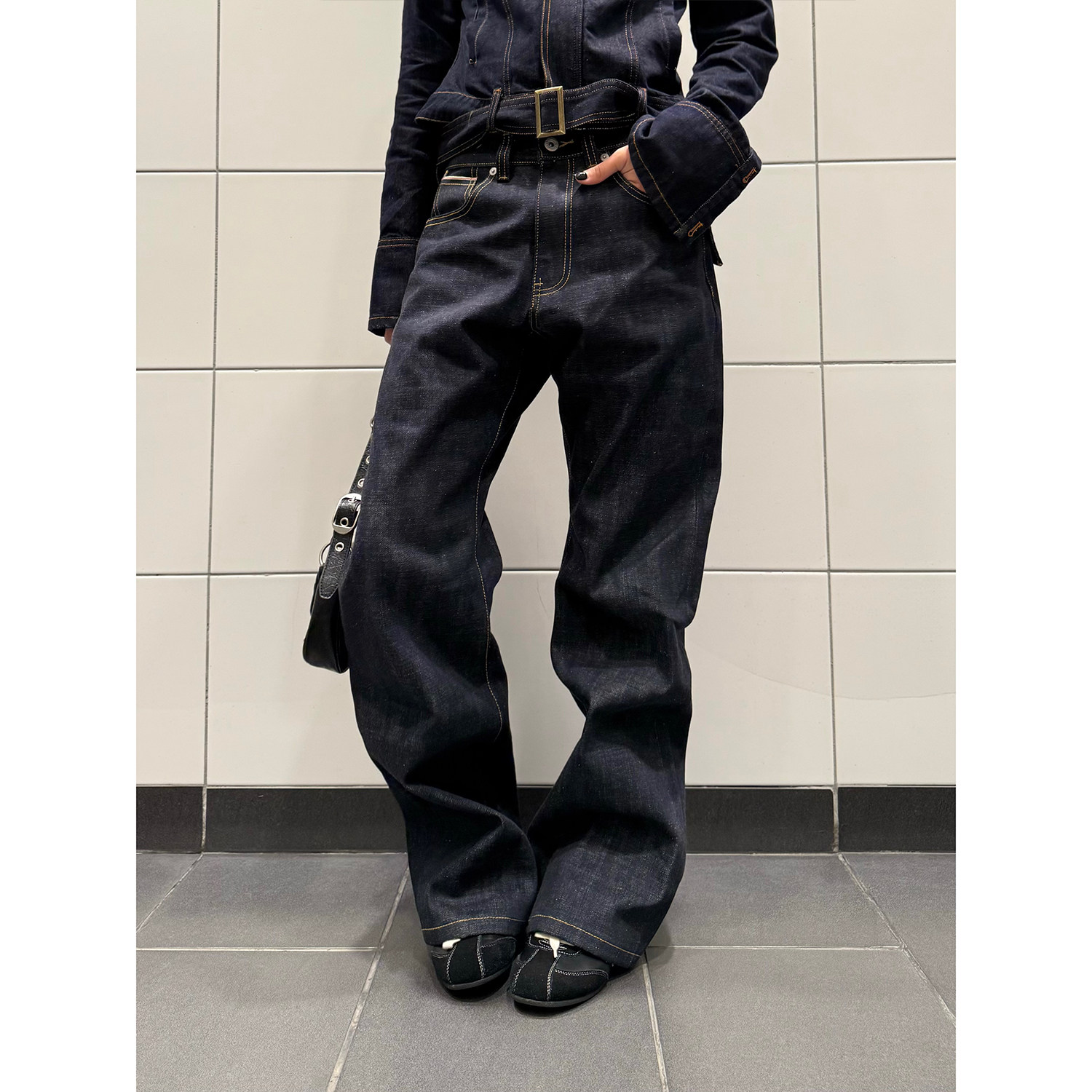 男女宽松百搭直筒长裤 复古赤耳蓝色白边撞色口袋牛仔裤 美式 F383