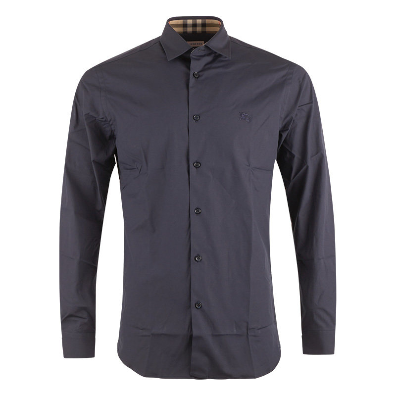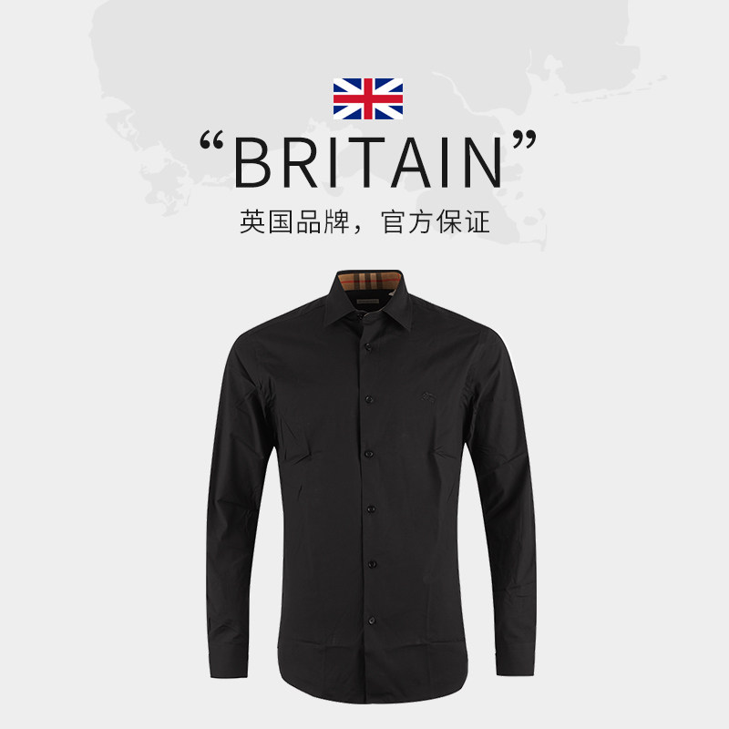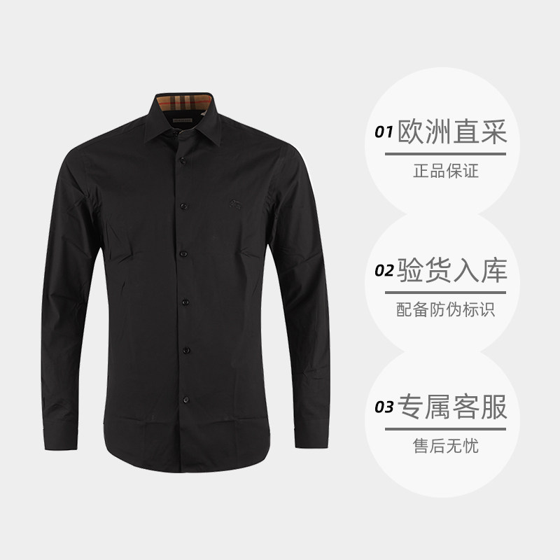 棉质战马骑士徽标刺绣纯色长袖 博柏利男士 BURBERRY 衬衫 自营