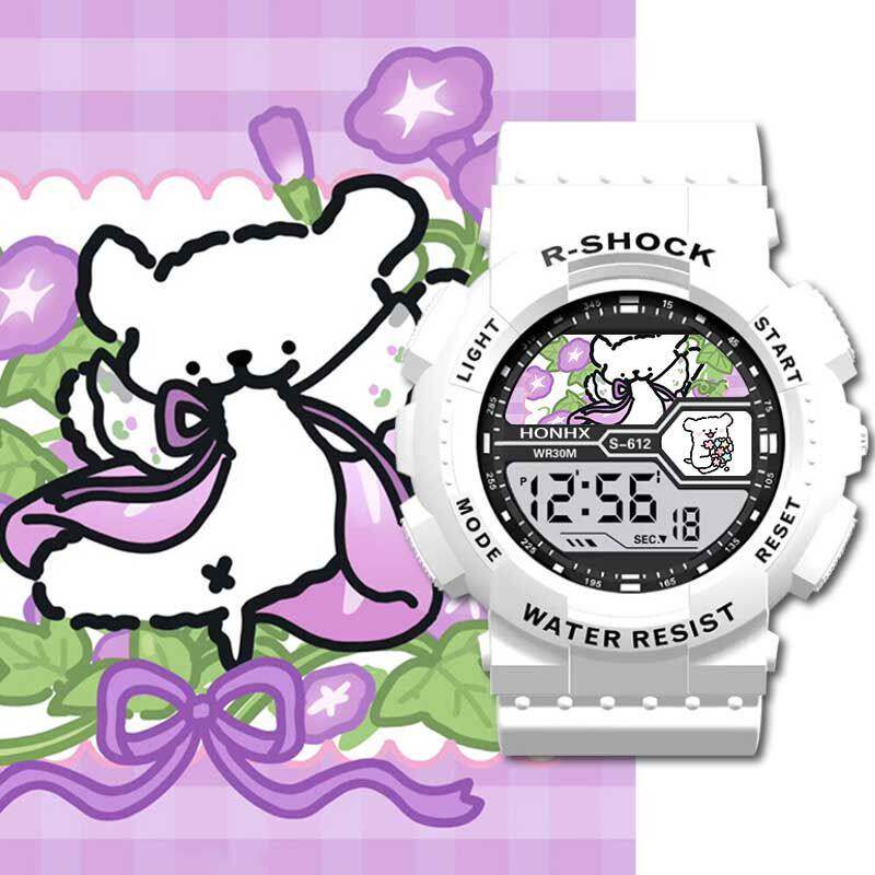 线条小狗可爱卡通同款 生日礼物 学生儿童手表初中生运动防水二次元