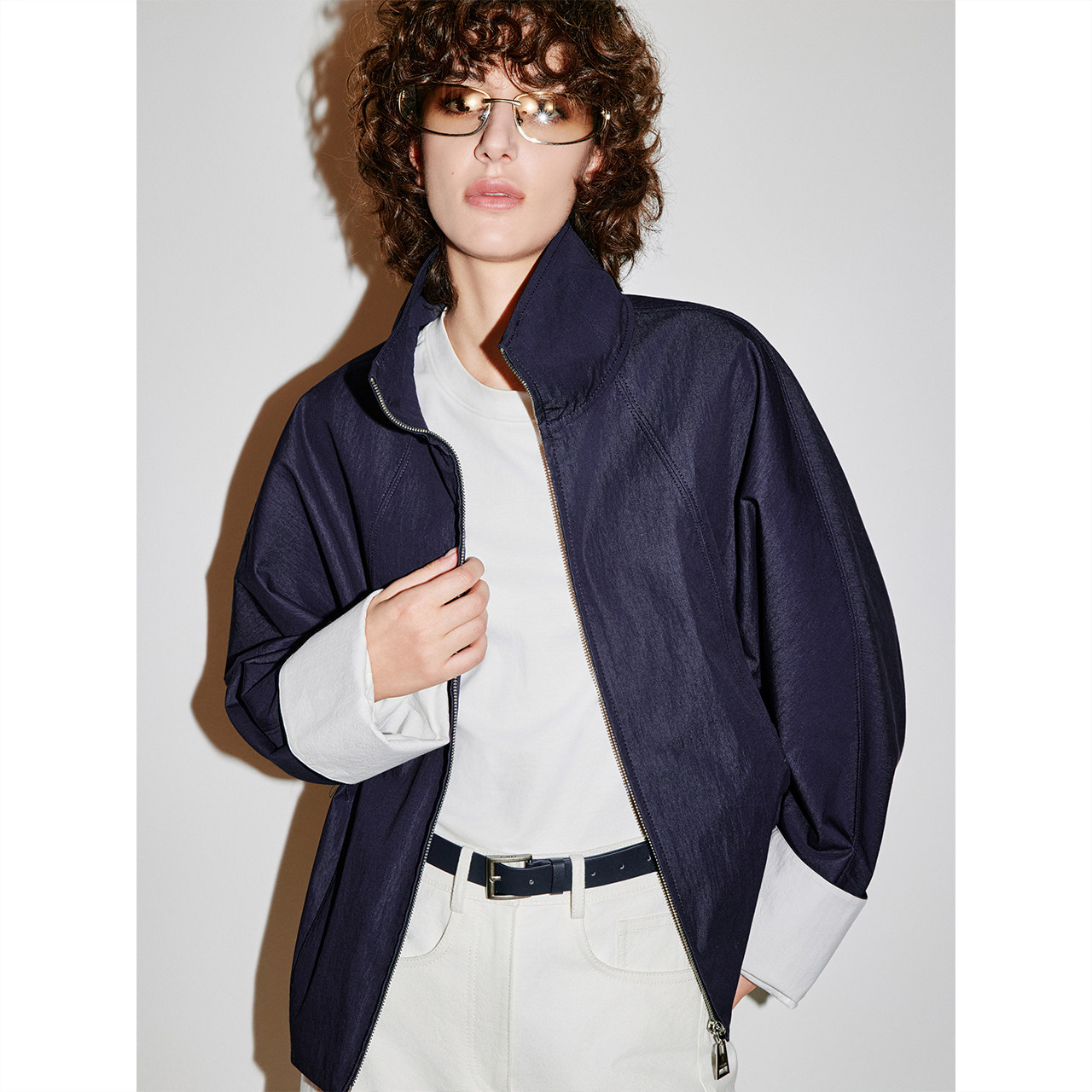 COVERINS深蓝仿牛仔外套女翻领拉链夹克2026春季 CC36110030 新款