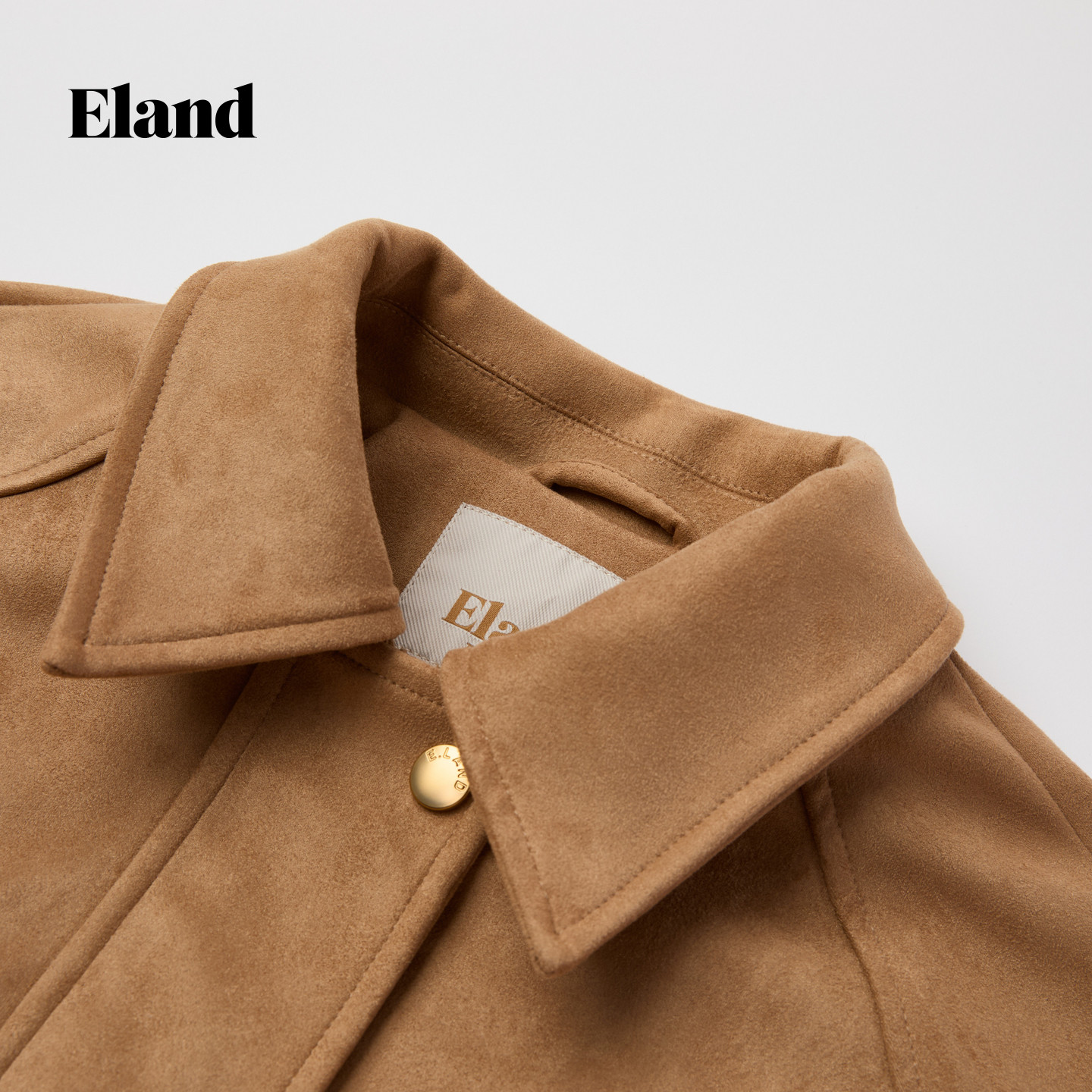 新款 Eland衣恋仿皮皮衣女休闲通勤翻领长袖 宽松外套2026春季