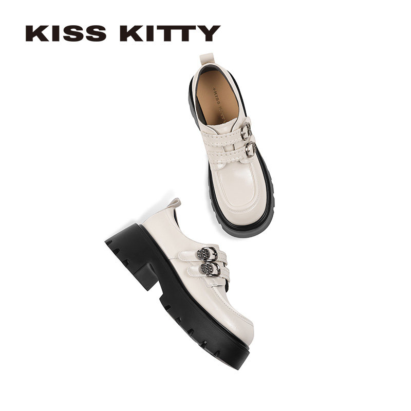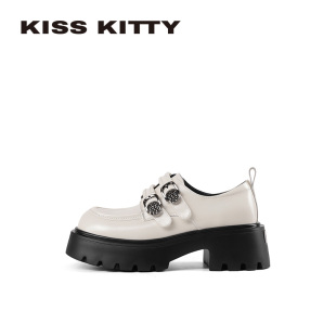 圆头甜酷厚底增高深口单鞋 新款 女 2026春季 KISSKITTY学院风小皮鞋