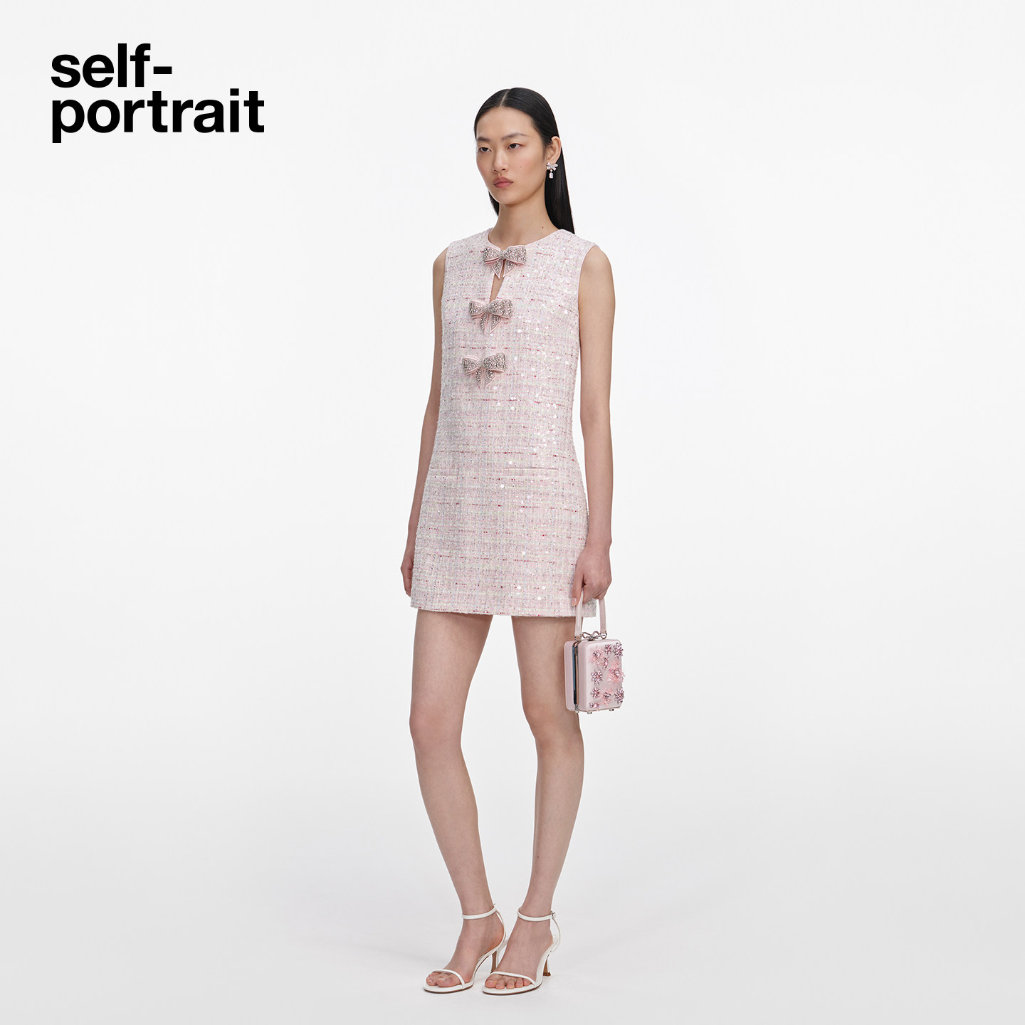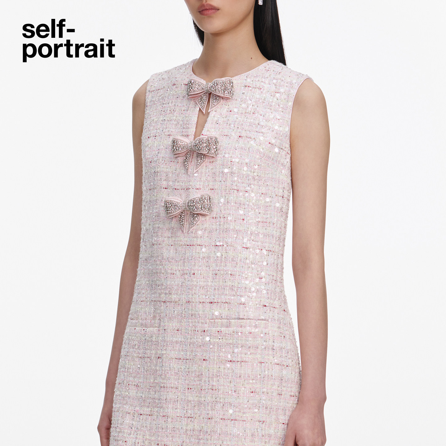 粉红色甜美蝴蝶结亮片粗花呢连衣裙 2026春夏新款 self portrait