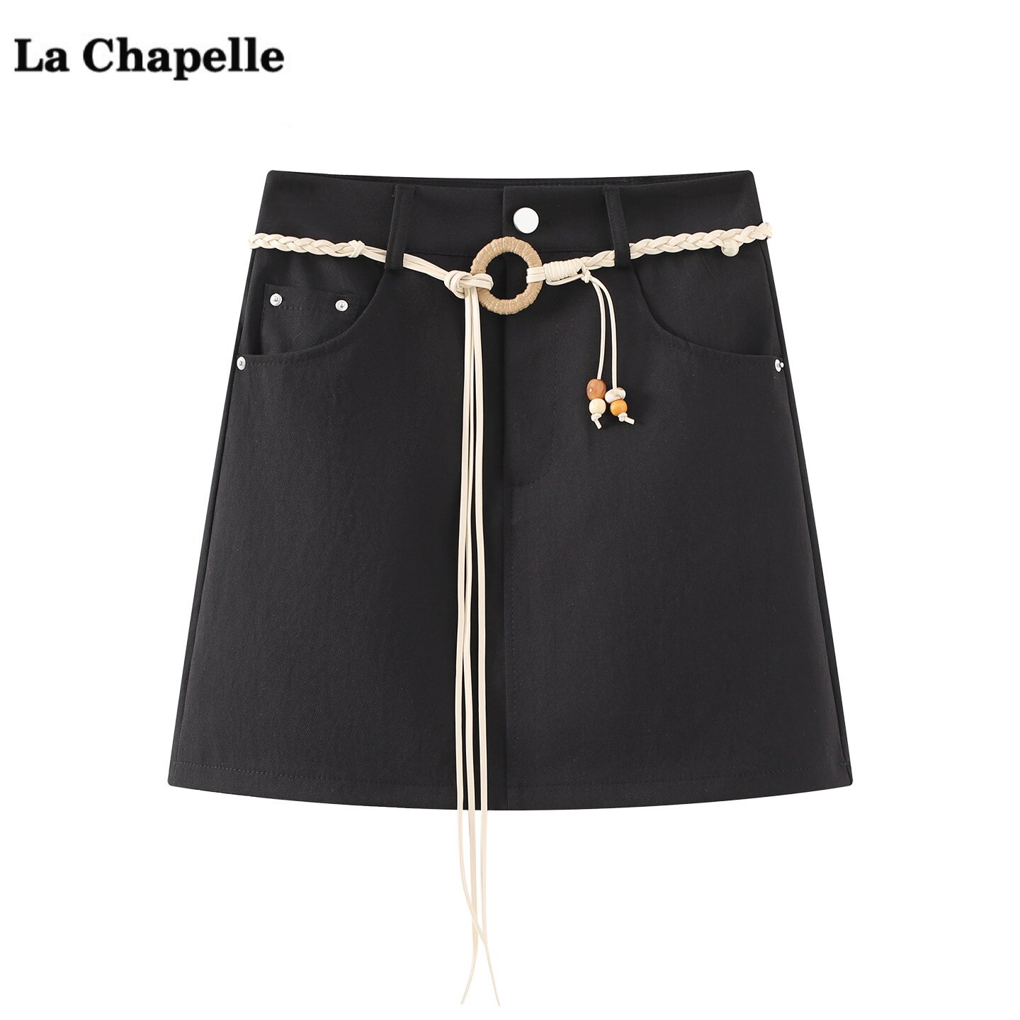 新款 拉夏贝尔 饰A字半身裙女春季 Chapelle腰带装 百搭显瘦短裙