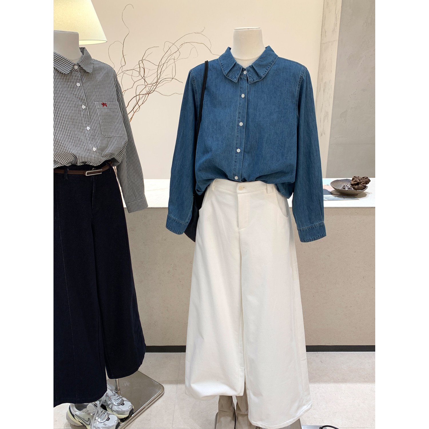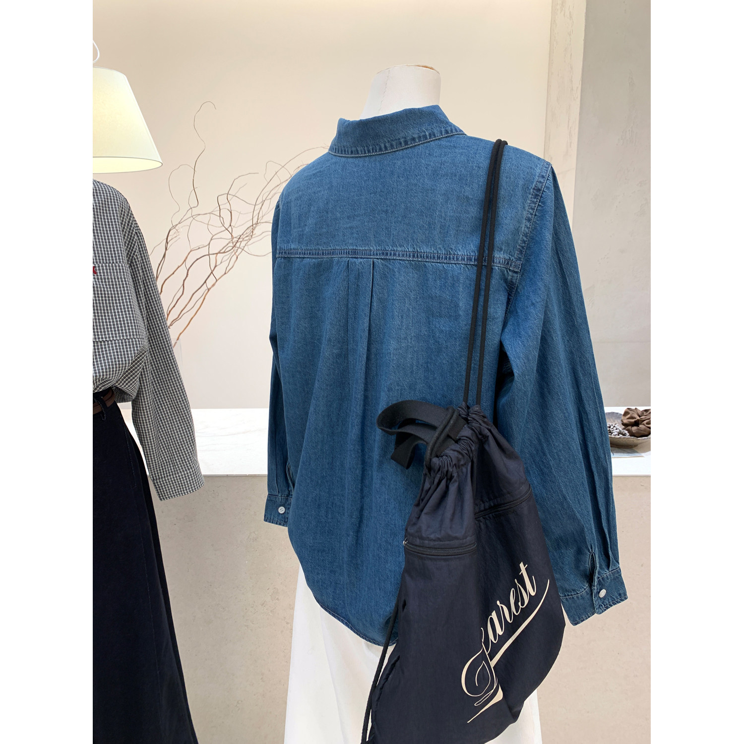 长袖 小哲 新款 女2026春季 翻领百搭显瘦气质上衣衬衣 复古牛仔衬衫