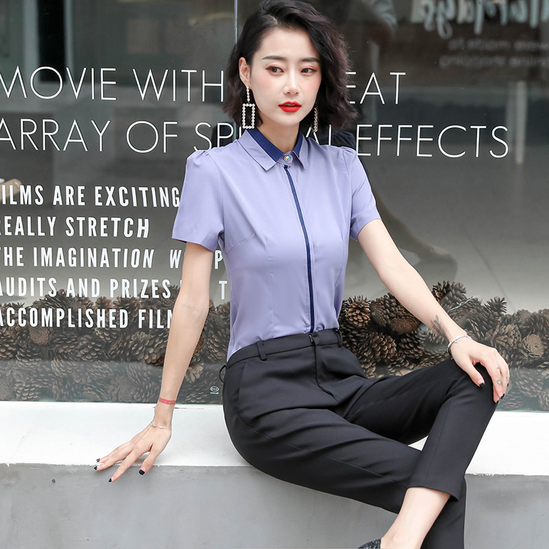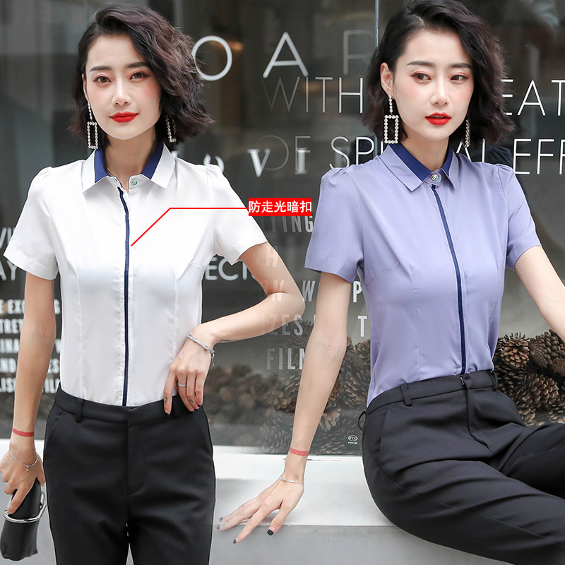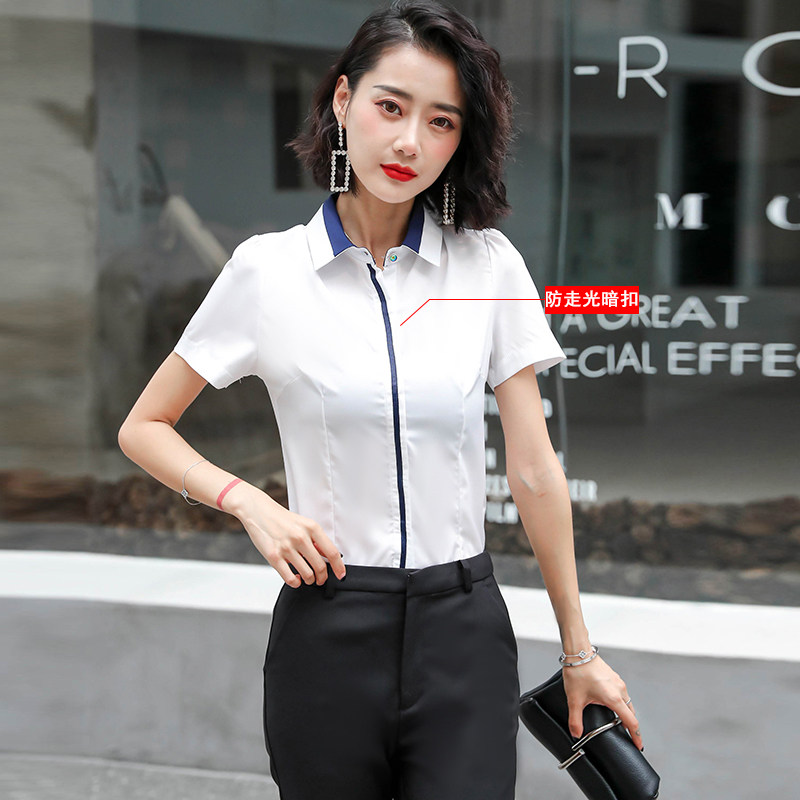 夏装 打底衫 职业装 女士短袖 上衣衬衣修身 女装 大码 2020白衬衫 正装