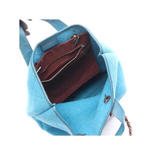 中古Chanel香奈儿女包B级9新Tote Bag托特包羊毛托特包蓝色正品