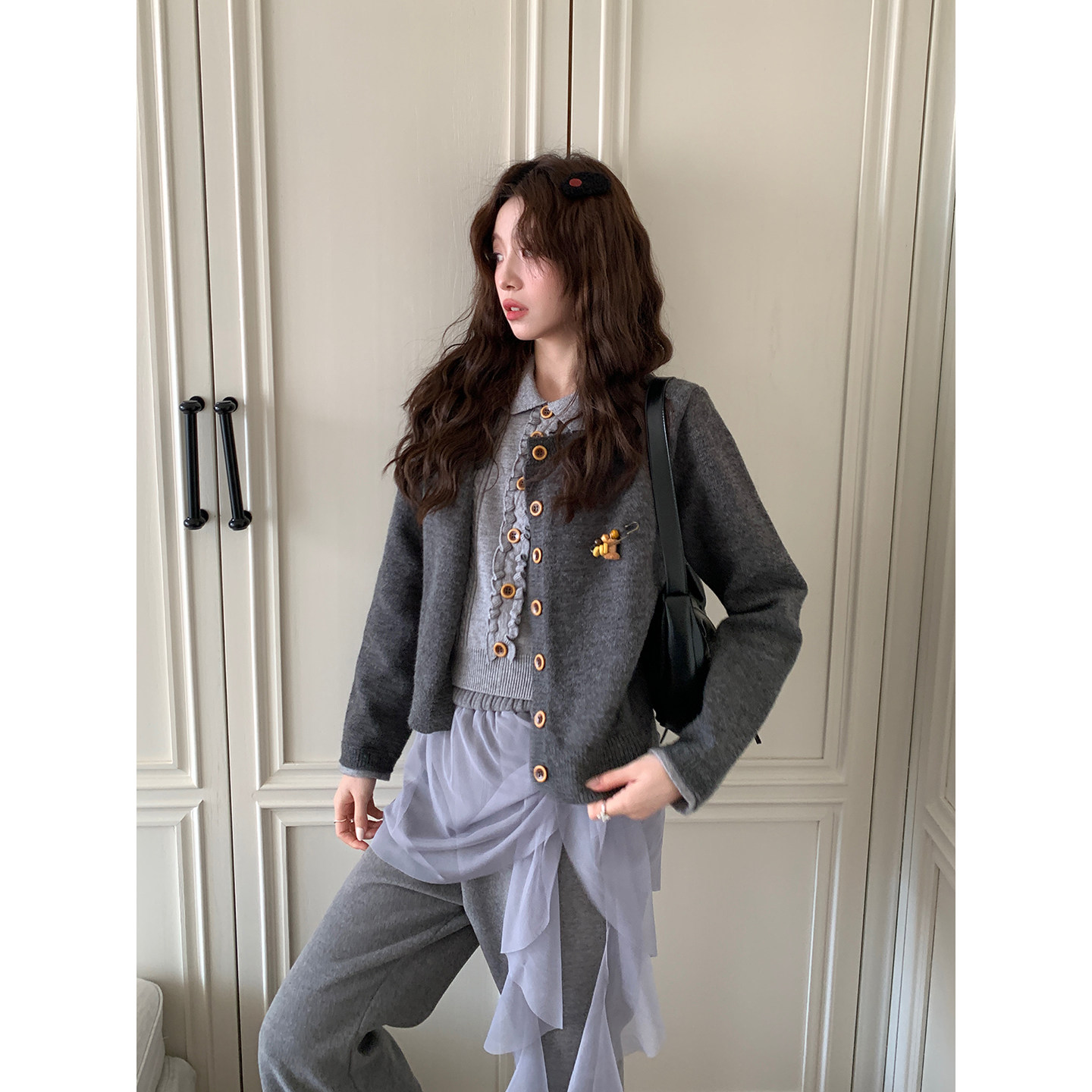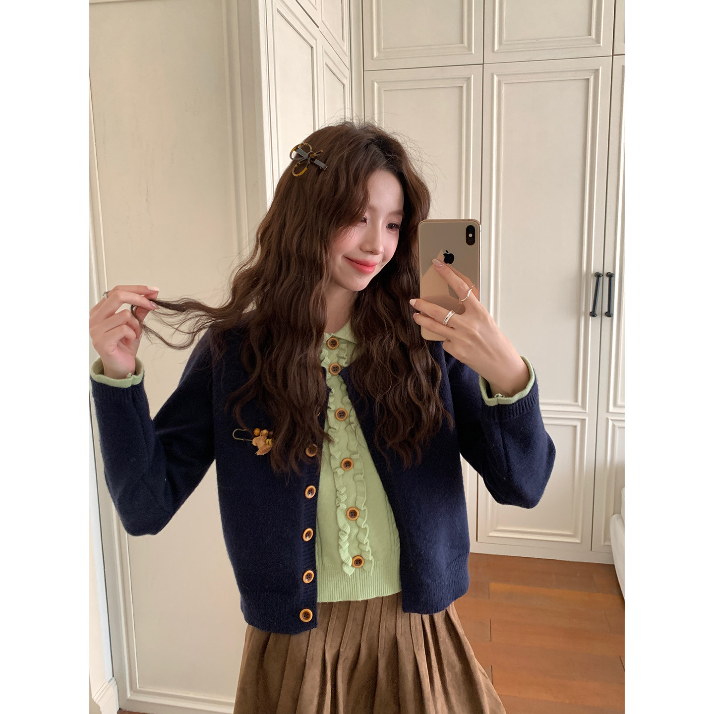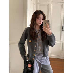 翻领假两件秋冬毛衣 韩系高智感撞色拼接韩版 Even一雯 溺爱薄荷