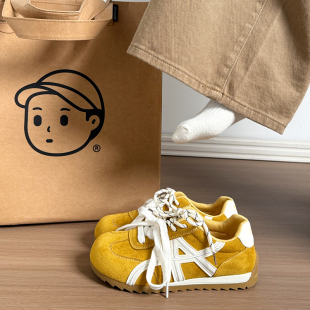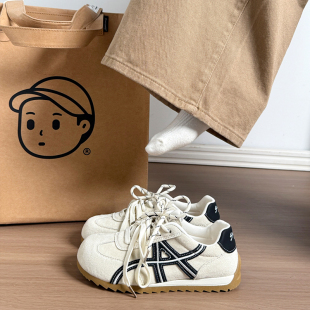 女2026春季 轻便运动鞋 新款 系带板鞋 百搭休闲阿甘鞋 红色拼色德训鞋