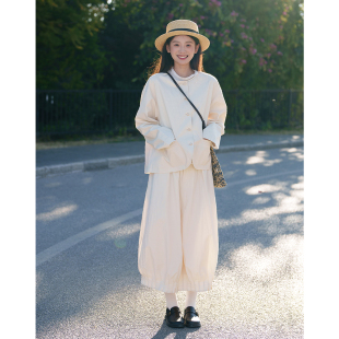 日系疗愈通勤风 花苞半身裙 质感原色超好搭配显瘦裙子 经典 古苔