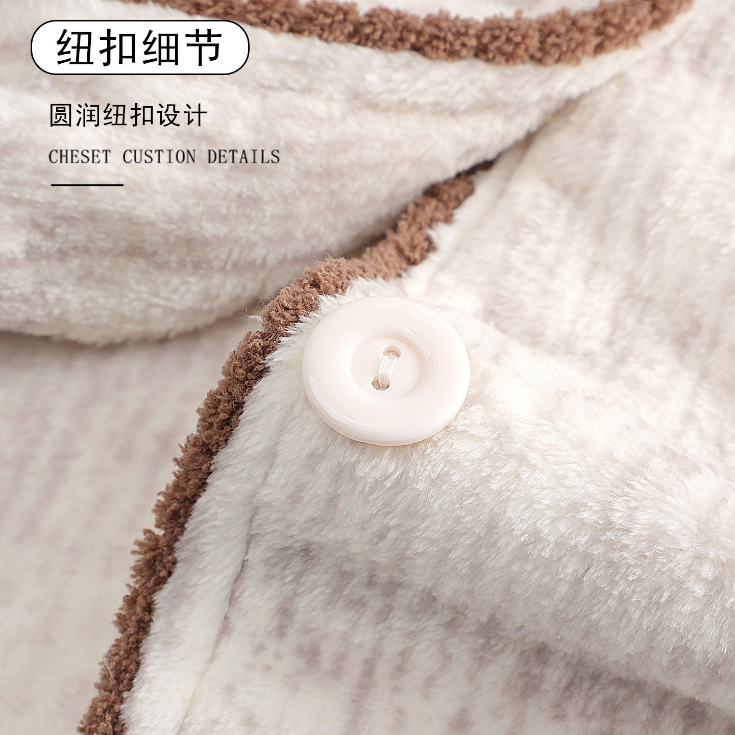 简约秋冬季 珊瑚绒睡衣女加绒加厚法兰绒家居服可外穿 圆领暖暖套装