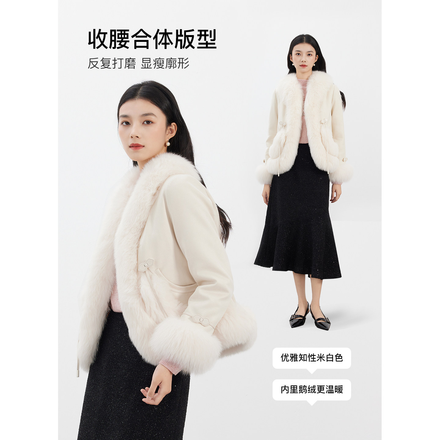 天谜气质设计感狐狸毛皮草优雅时尚 女TMi254054 淑女大衣2025冬季