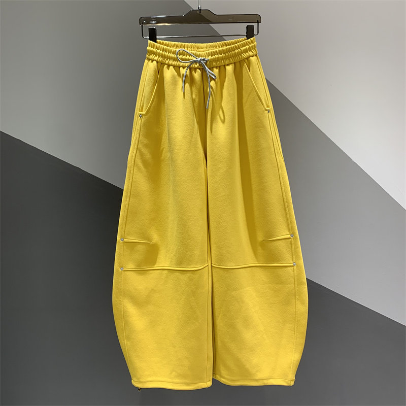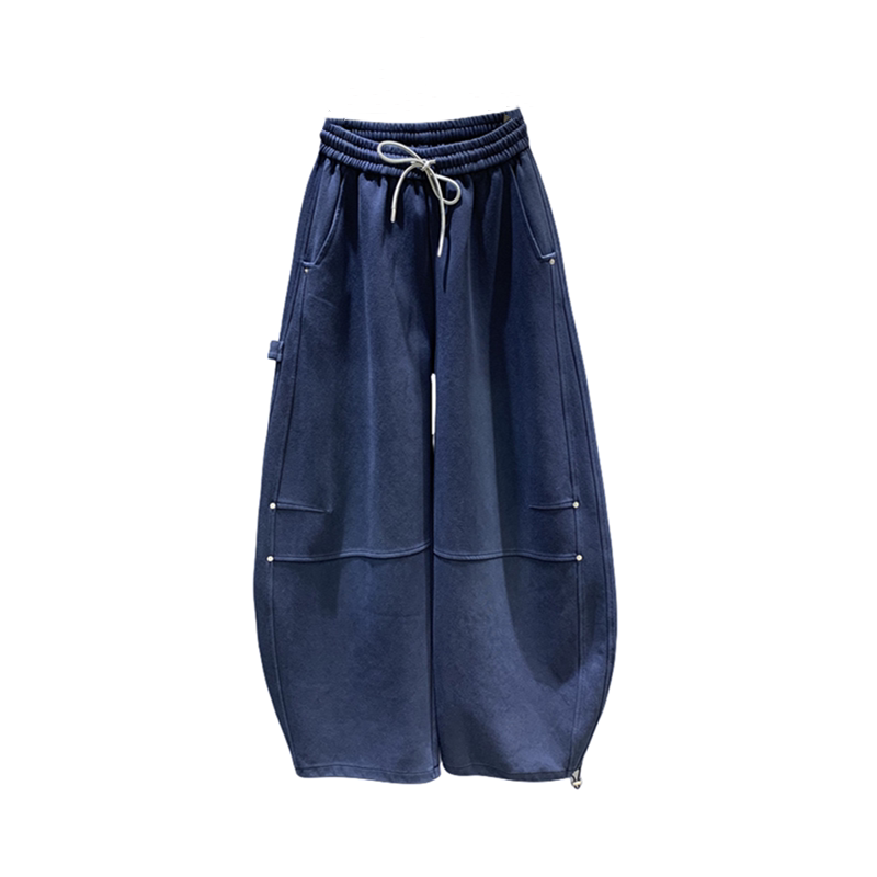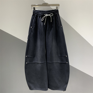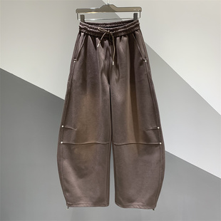 长裤 2026年春季 女百搭宽松拼接阔腿香蕉裤 松紧抽绳休闲弯刀裤 新款