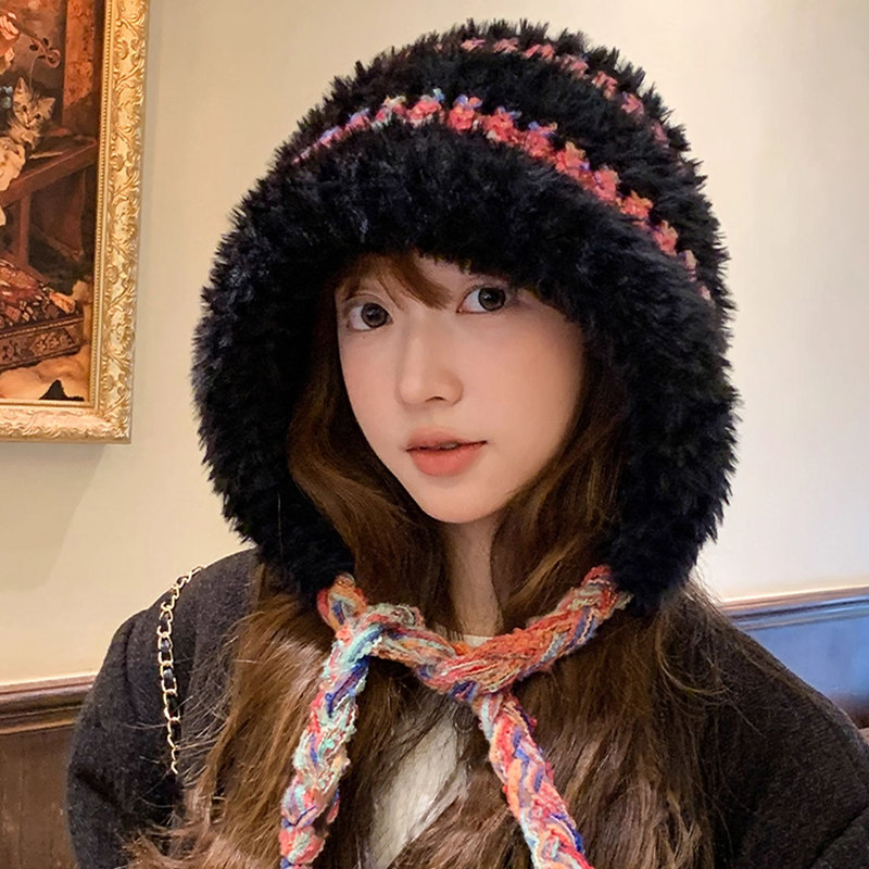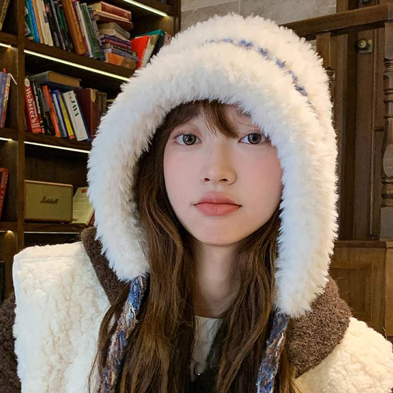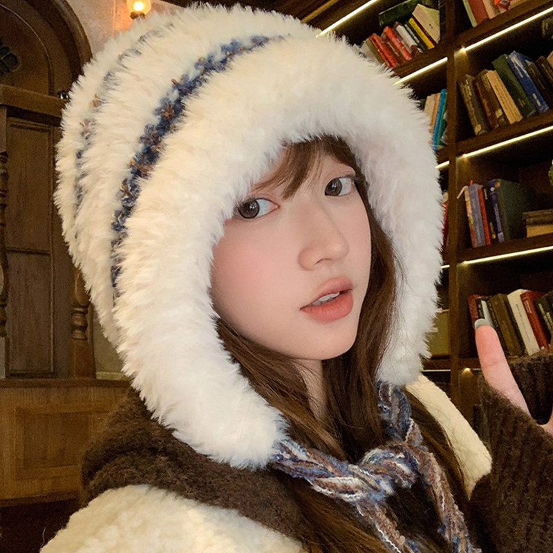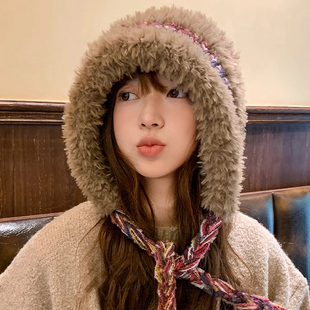 可爱小熊毛绒帽子围巾一体女士秋冬季 加厚保暖防寒护耳骑行雷锋帽