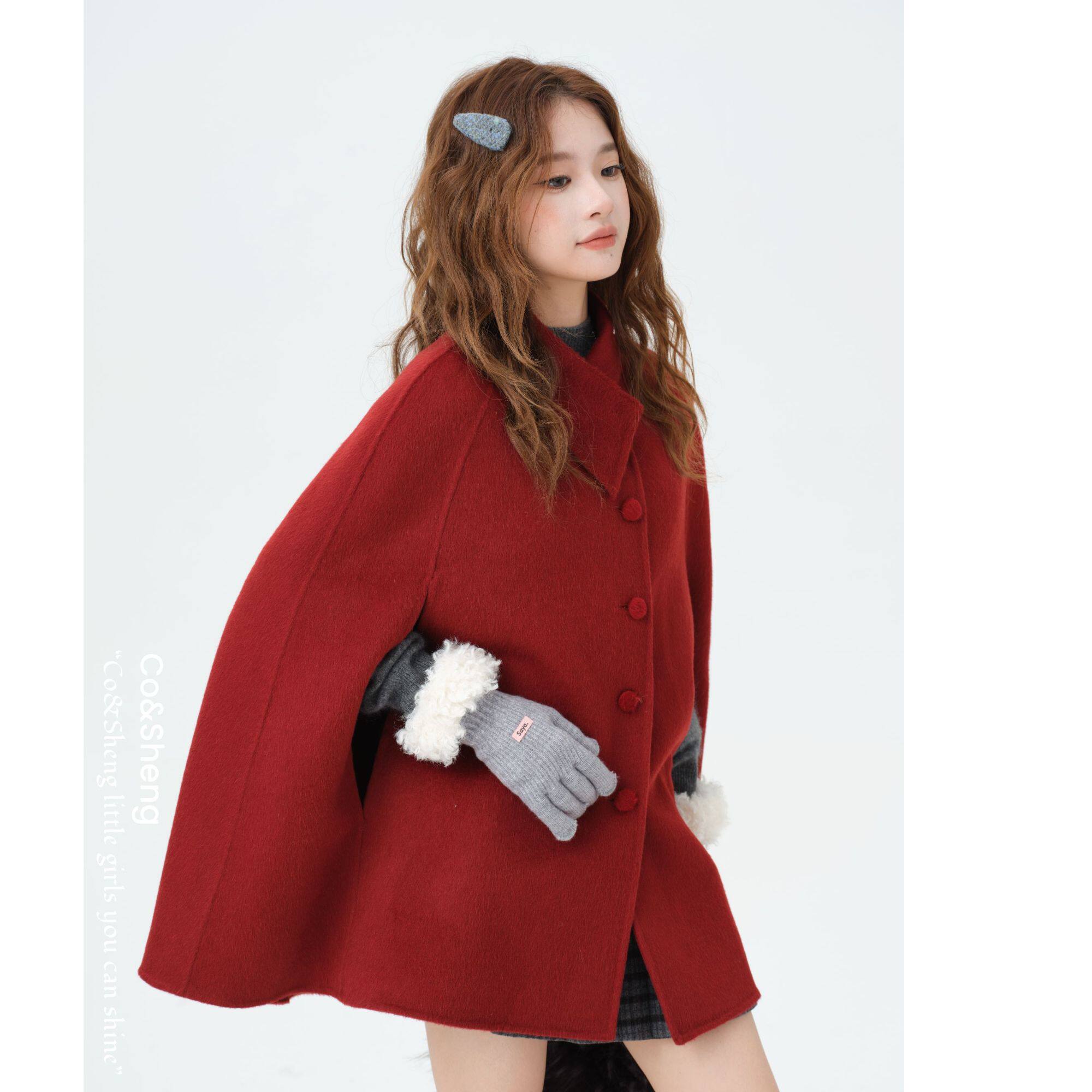 时尚 玫瑰情诗 新款 羊毛毛呢外套斗篷大衣春季 百搭女Co&Sheng 重生